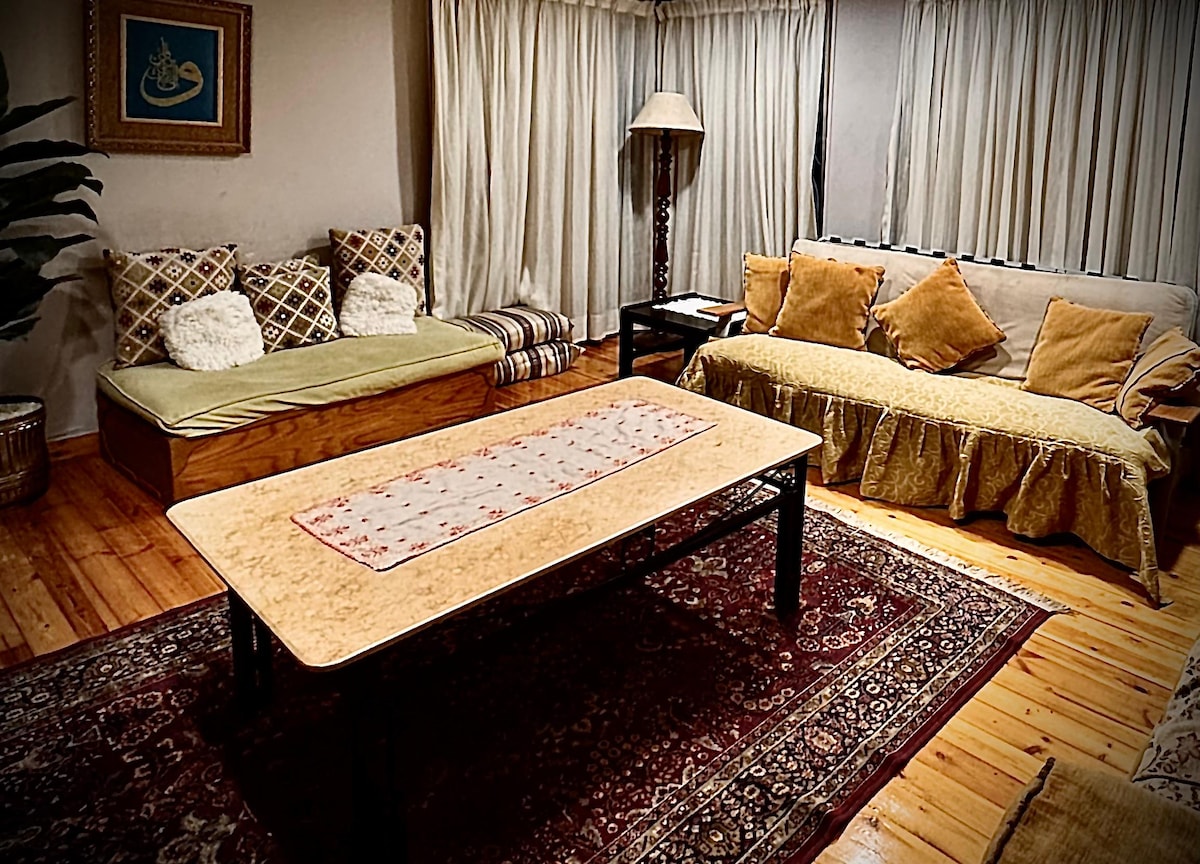 Простора 3-кімнатна квартира в центрі Мааді, всього в 10 хвилинах ходьби від Нілу і недалеко від метро. У головній спальні є ліжко king-size і суміжна ванна кімната, у другій кімнаті є два односпальні ліжка, а в третій - односпальне ліжко з невеликим ліжком для дитини. У вітальні є два дивани-ліжка для додаткових гостей. Повністю обладнана кухня, сучасні зручності та помешкання для сімейного відпочинку. Ідеально підходить для груп або сімей, які шукають комфорт і зручність у чудовому місці.