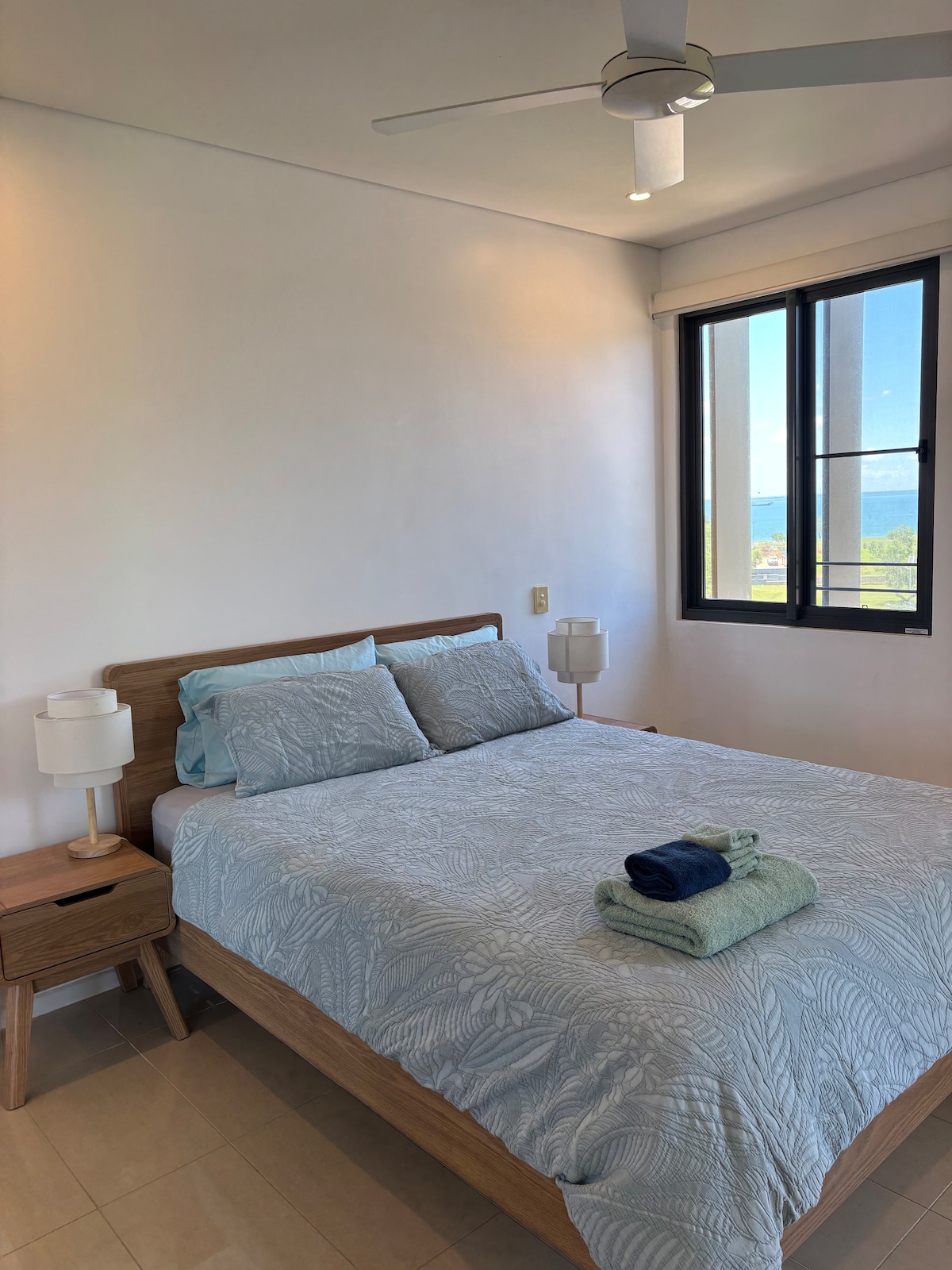 Welcome to our charming apartment, perfect for solo travelers, couples, or small families. The Space Our stylishly decorated apartment features One bedroom with a comfortable king bed and a sofa bed (Double size) in the living room, a fully equipped kitchen.Enjoy modern amenities like Wi-Fi, a smart TV, and air conditioning. Location Situated in a lively neighborhood and sea breeze. Restaurants, and entertainment venues, a beautiful lagoon, wave pool and private pool within walking distance.