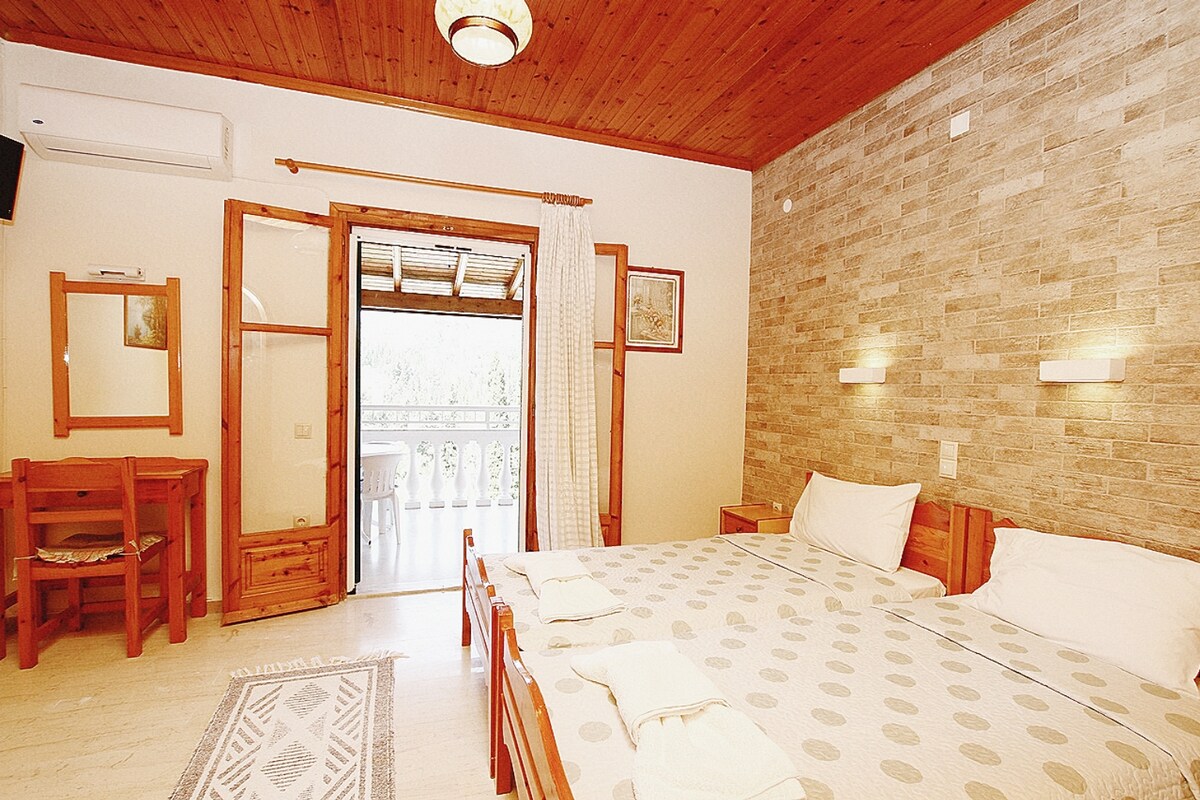 З видом на наші прекрасні сади, наші повністю обладнані та нещодавно оновлені номери-студії складаються з двоспального ліжка, окремої ванної кімнати з душем та патіо. Номери-студії, які можуть вмістити до 2 осіб (+дитяча люлька за запитом). Пропонується послуга з утримання приміщень, включаючи заміну постільної білизни та рушників. Ідеально підходить для пар, це ідеальний вибір, щоб провести свої особливі моменти на Корфу.