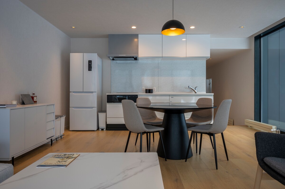 Наш новий сучасний гірськолижний будинок розташований в тихому районі Кондо, між двома найяскравішими гірськолижними зонами Нісеко та Русуцу. Він пропонує зручний доступ до різноманітних чарівних магазинів, місцевих ресторанів, зберігаючи відчуття тихого відпочинку. Будинок має відкриту та простору планування, включаючи простору вітальню, сучасну кухню, їдальню та 2 комфортабельні спальні. Він поєднує в собі практичність із елегантністю, забезпечуючи розслаблене та стильне життя.