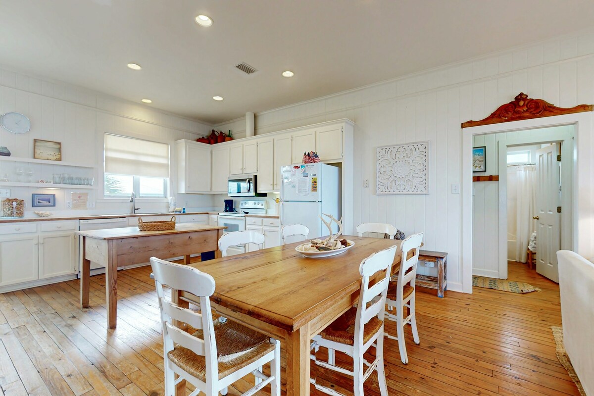 Будинок Генріха - це чарівний заміський будинок, який є поверненням до старовинних острівних будинків, але був побудований у 2017 році. Його спроектував відомий архітектор Ерік Мозер, а інтер 'єри були зроблені інсайдером HGTV. Він знаходиться в декількох хвилинах ходьби від пляжів, ресторанів і магазинів. Ми хотіли б, щоб ви приїхали до нашого улюбленого маленького будинку, тому що кожен, хто обожнює бар 'єрний острів узбережжя Мексиканської затоки, знаходиться в нашому племені. Можна навіть взяти з собою собаку! Для нього є тіньовий огороджений двір, де він може погратися.
