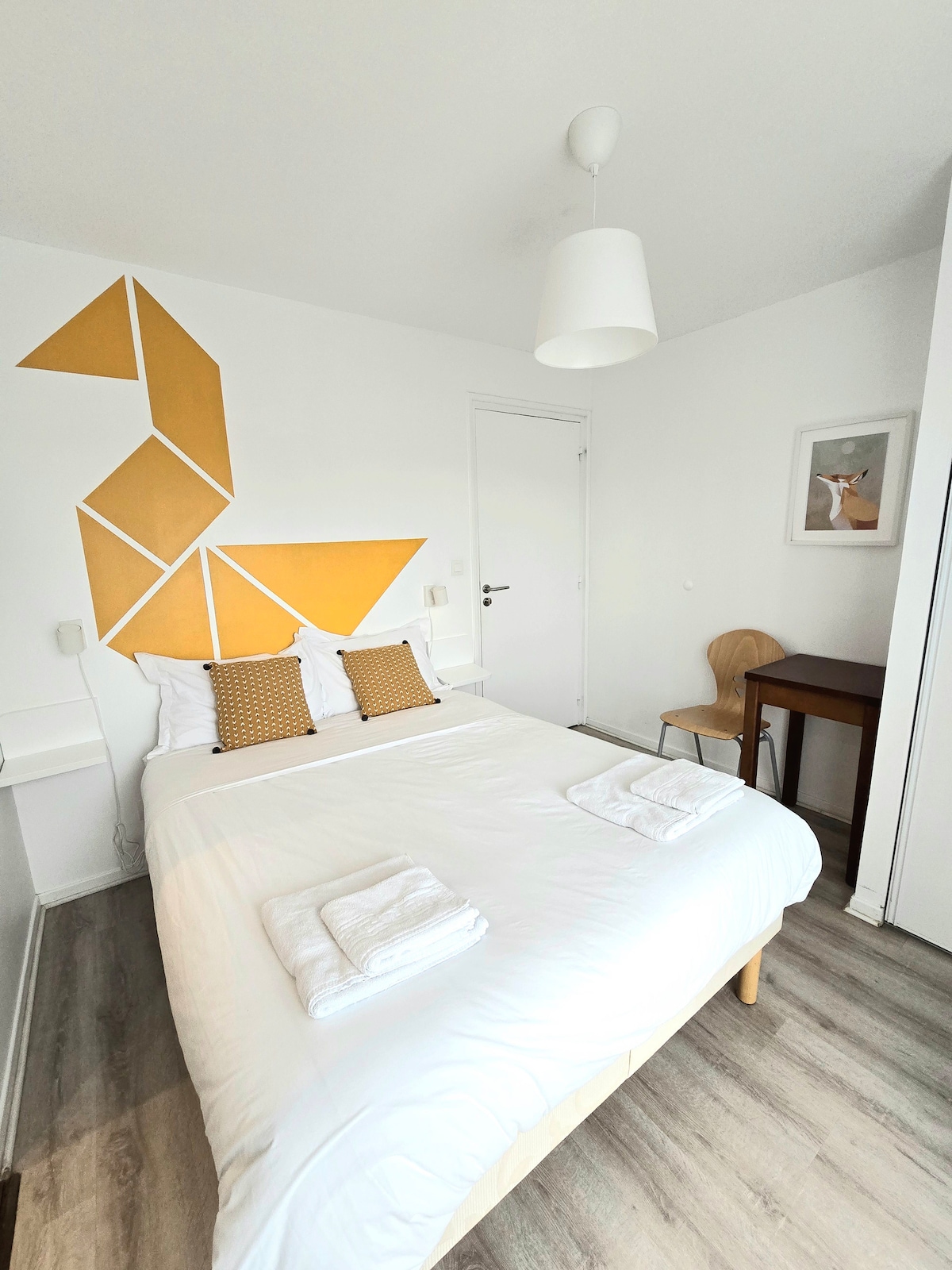 4 кімнати для 9 дорослих, які бажають відпочити (місце не зручне для дітей) За день : 1 кімната на 1 особу (ліжко в 90) : 35 € 1 кімната 1 особа (ліжко в 180) : 40 € 1 кімната для 2 осіб : 50 € Кухня, постільна білизна та податки включені Приватна автостоянка Власник, що живе в будинку, кіт (невимушений)