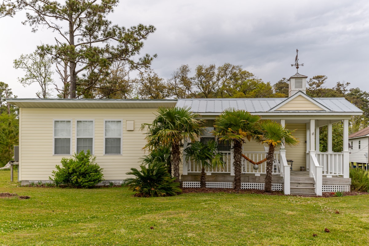 Ласкаво просимо в красу та природі Core Sound! Котедж Yates Cottage знаходиться безпосередньо на воді і призначений для вражаючих видів на Core Sound і маяк Cape Lookout з великих вікон з трьох сторін. Інші зручності - велика веранда, вогнище та великий двір для ігор на газоні. Котедж Йейтс чудово підходить для пар, сімей, собак, бігунів, пішоходів, велосипедистів, рибалок і човнистів. Вас зустрінуть зі свіжовиготовленими ліжками, рушниками та повністю обладнаною кухнею з посудом Keurig та Rachel Ray.