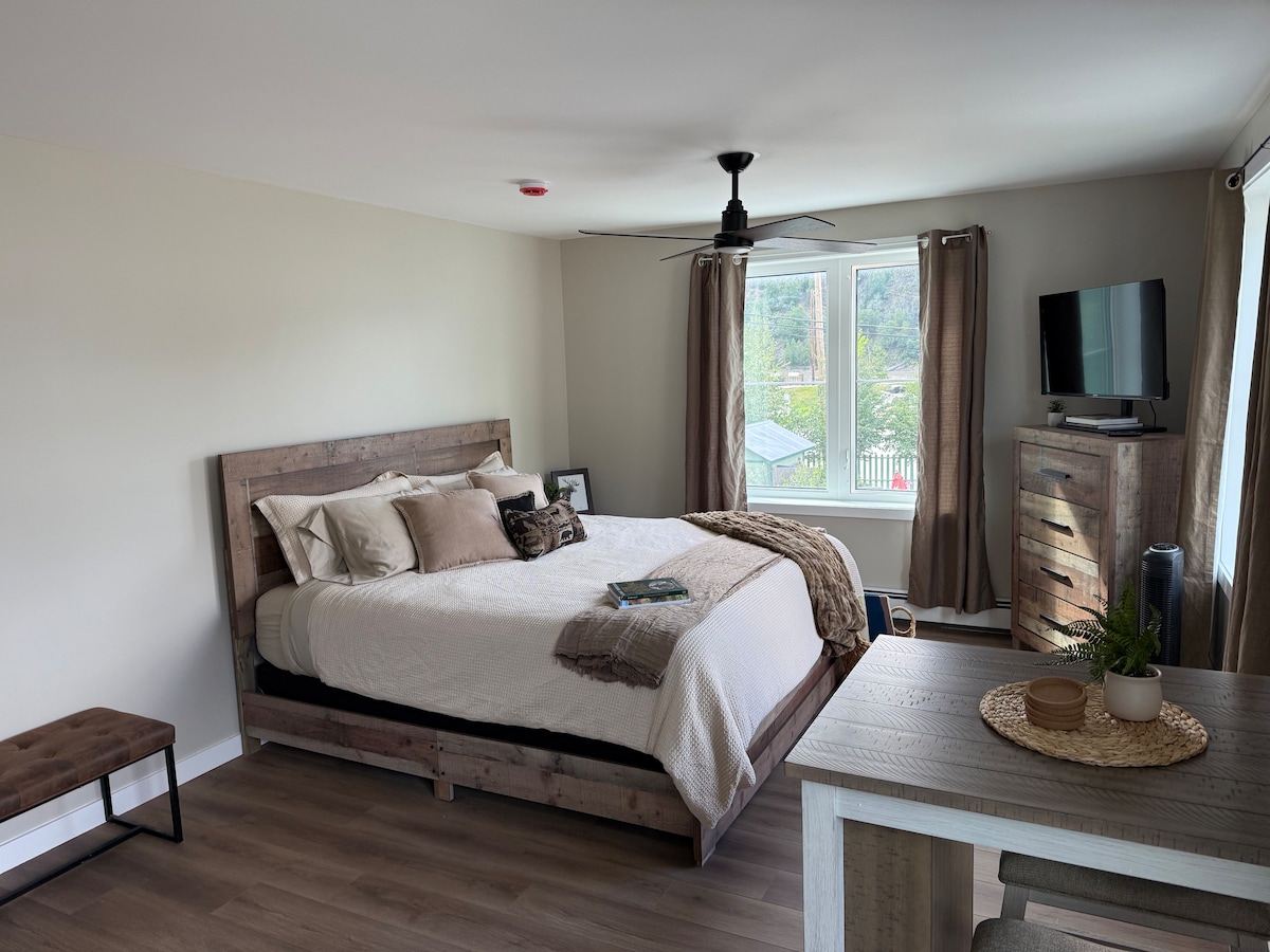 Welcome to our Moose Suite is in the Heart of Dawson City! Steps away from our newly renovated Bachelor suite are Historical sites, Great Restaurants, Diamond Tooth Gertie's Casino and Danoja Zho Cultural Centre. Perfect location to explore and to relax with super comfy premium bedding. Check out our other listings in Dawson City: Grizzly Suite - One bedroom Apartment Wolf Suite - King sized bed Bachelor Apartment Lynx Suite - One Bedroom Apartment