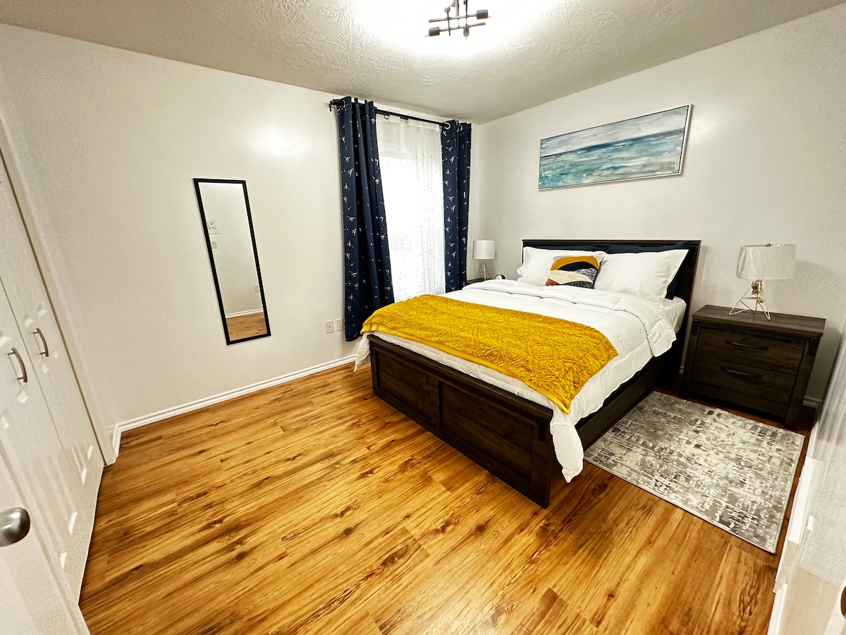 Цей люкс з окремим входом ідеально підходить для працівників або всіх, хто відвідує Доусон-Крік і потребує чистого, приватного та спокійного перебування. Просто візьміть свої сумки та відпочиньте у цьому затишному люксі. Швидкий Wi-Fi і кабельне телебачення зі спортивними каналами для завантаження. На кухні є базові потреби, включаючи основні спеції для приготування їжі. Усе включено для короткострокової та довгострокової оренди. Цей апартамент знаходиться не більше ніж в 10 хвилинах їзди від центру міста. За цим таунхаусом є приємна пішохідна стежка, яку ви можете досліджувати.