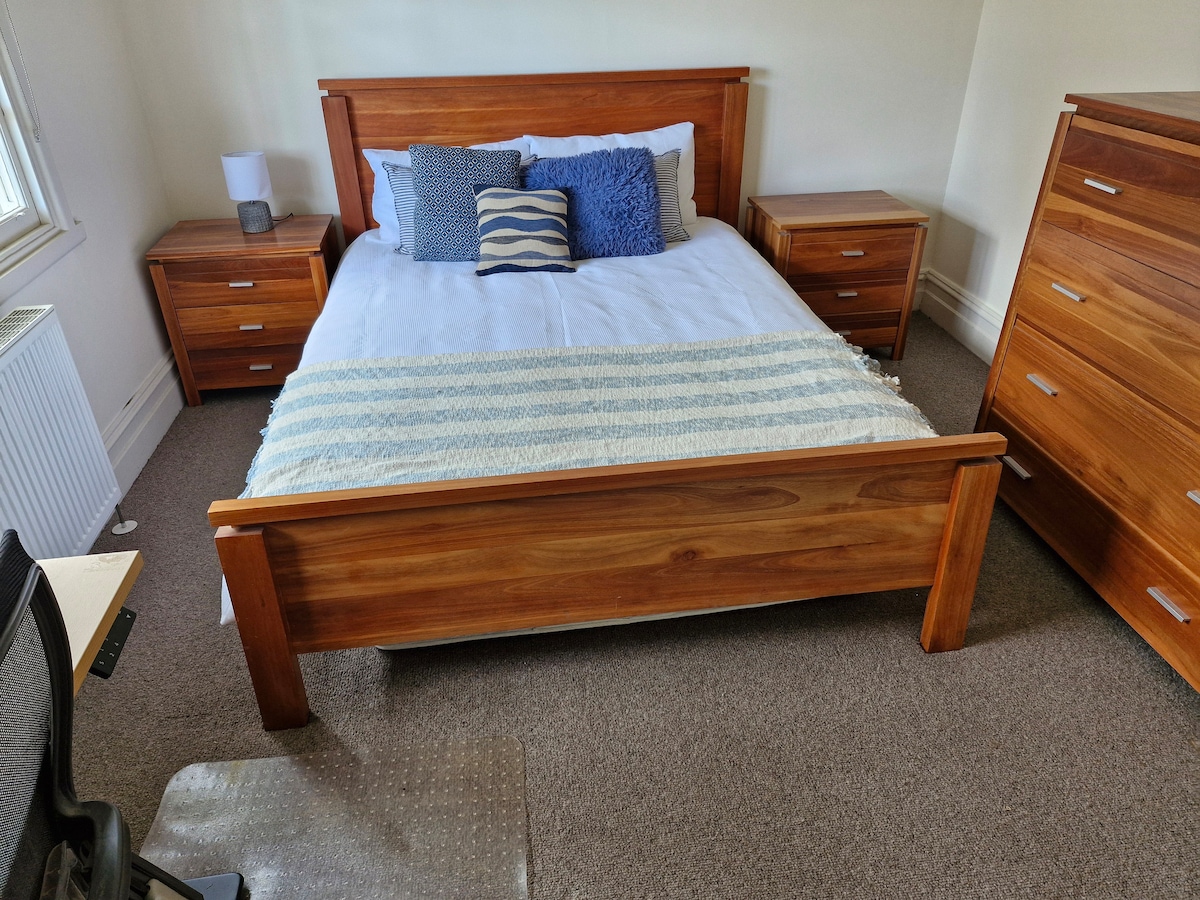 Невелике, але чудове бунгало в задній частині будинку в каліфорнійському стилі 1926 року. Приватний доступ. Спальня та окрема ванна кімната з виходом до спокійного саду та їдальні на вулиці. Ідеально підходить для однієї або пари, які перебувають у цьому районі для роботи, великих спортивних заходів або сімейних заходів. Кілька хвилин ходьби до трамвая/автобуса до центру Мельбурна. Поруч кафе, ресторани, кінотеатр, центр відпочинку Balwyn та торговельне селище. Теплі та гостинні ірландські господарі, які поважатимуть ваше приватне життя.
