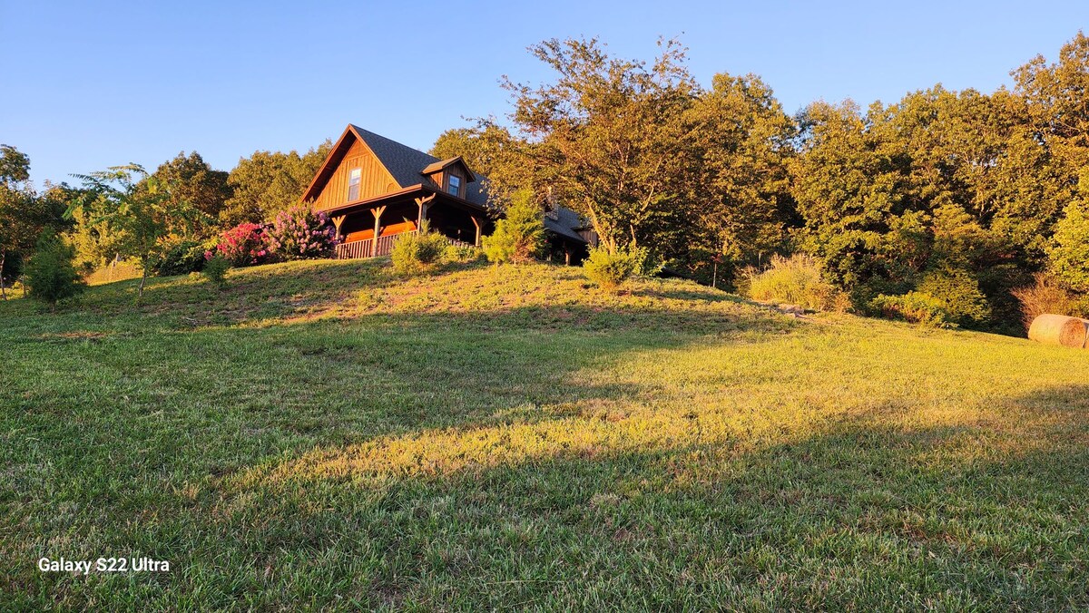 Relax and get away at our peaceful brand new cabin tucked away in the woods with a great view. We are located on 80 acres with private trails on our property. This is our second cabin here at Bluff Point in addition to our home. You will have a peaceful, private, secluded feel with nice scenery and plenty of places to explore if you wish. We are thrilled with how this cabin turned out. We love this place and confident you will too. 4x4 or all wheel drive is best.