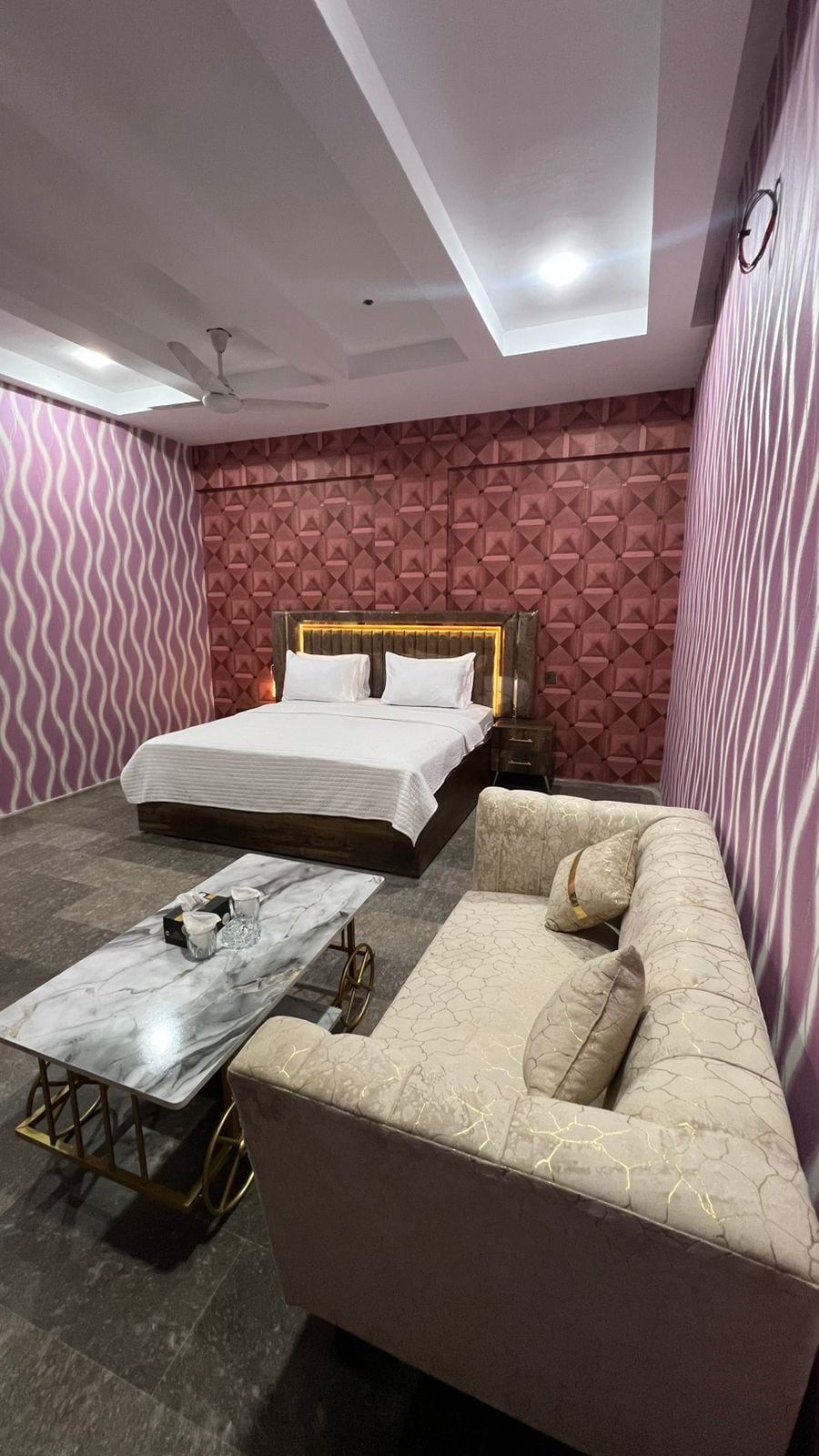 Stay at an exclusive private club in DHA Phase 6, Karachi. Enjoy a private lounge, housekeeping and room service. Access pool, gym, a walking track, and sports facilities for a minimal fee. Gated entry, 24/7 security, and a prime location ensure a seamless stay. Single person room available with a king sized bed.