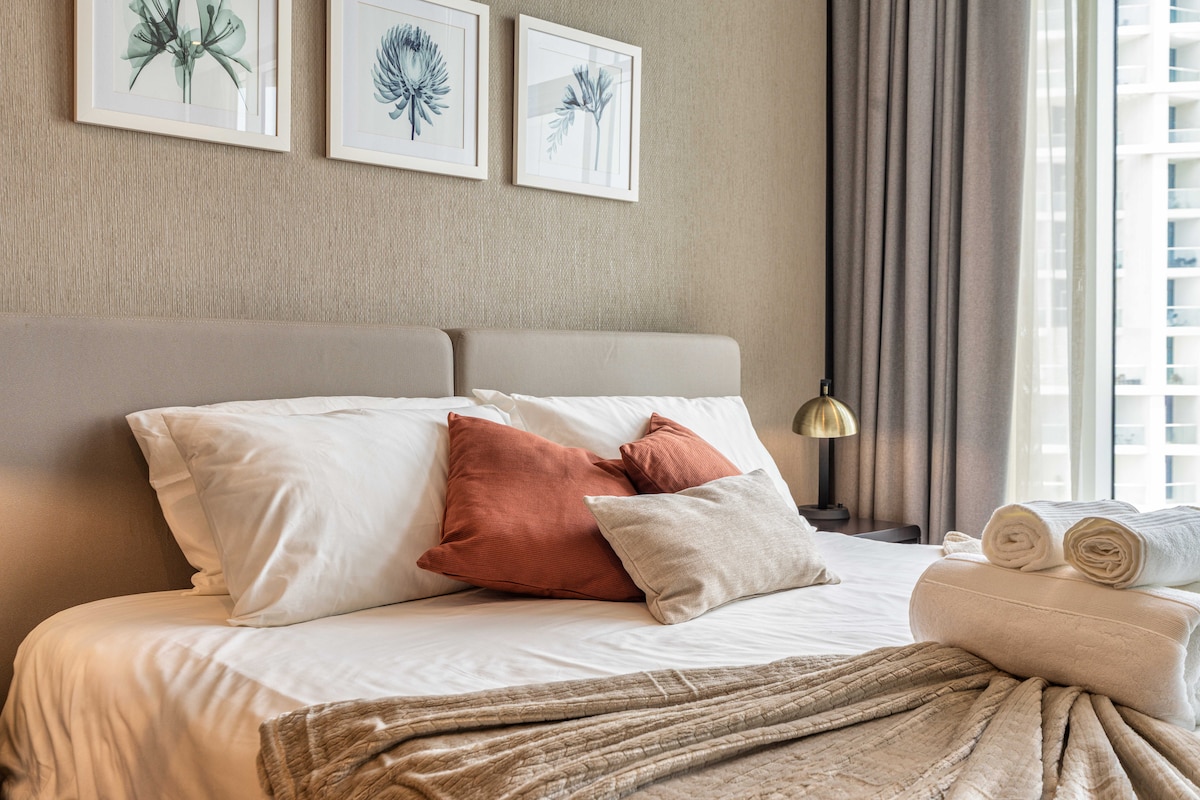Затишна та сучасна студія з 1 спальнею в центрі Бізнес-Бей - Всього в 5 хвилинах ходьби від торгового центру Dubai Mall і Burj Khalifa. - 8 хвилин до DIFC - Поруч із найкращими ресторанами та лаунжами в пішій доступності. - Безкоштовні зручності преміум-класу: басейн і тренажерний зал. - Безкоштовна парковка. - Цілодобовий консьєрж-сервіс - Високошвидкісний Wi-Fi Wi-Fi - Пральня в помешканні - Дитяче ліжечко для сімей - Місце для скутерів/велосипедів для зручного дослідження - Цілодобові доставки в супермаркеті - Вид на Бурдж-Халіфа з кімнати для вечірок - Ідеально підходить як для бізнес-мандрівників, так і для відпочинку.