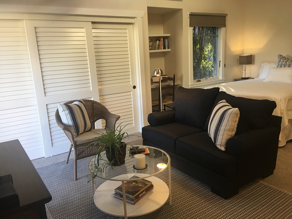 Coastal Seaside Studio Oasis Welcome to your newly remodeled, beautifully designed studio retreat where beach-inspired elegance meets everyday comfort. This charming studio features a bright, open interior paired with a spacious, serene private living area —perfect for relaxing or entertaining. Enjoy your own dedicated AC/heat and a larger, fully remodeled bathroom. An ideal choice for couples, solo travelers, or friends looking for a unique getaway in a perfect location close to the beach!
