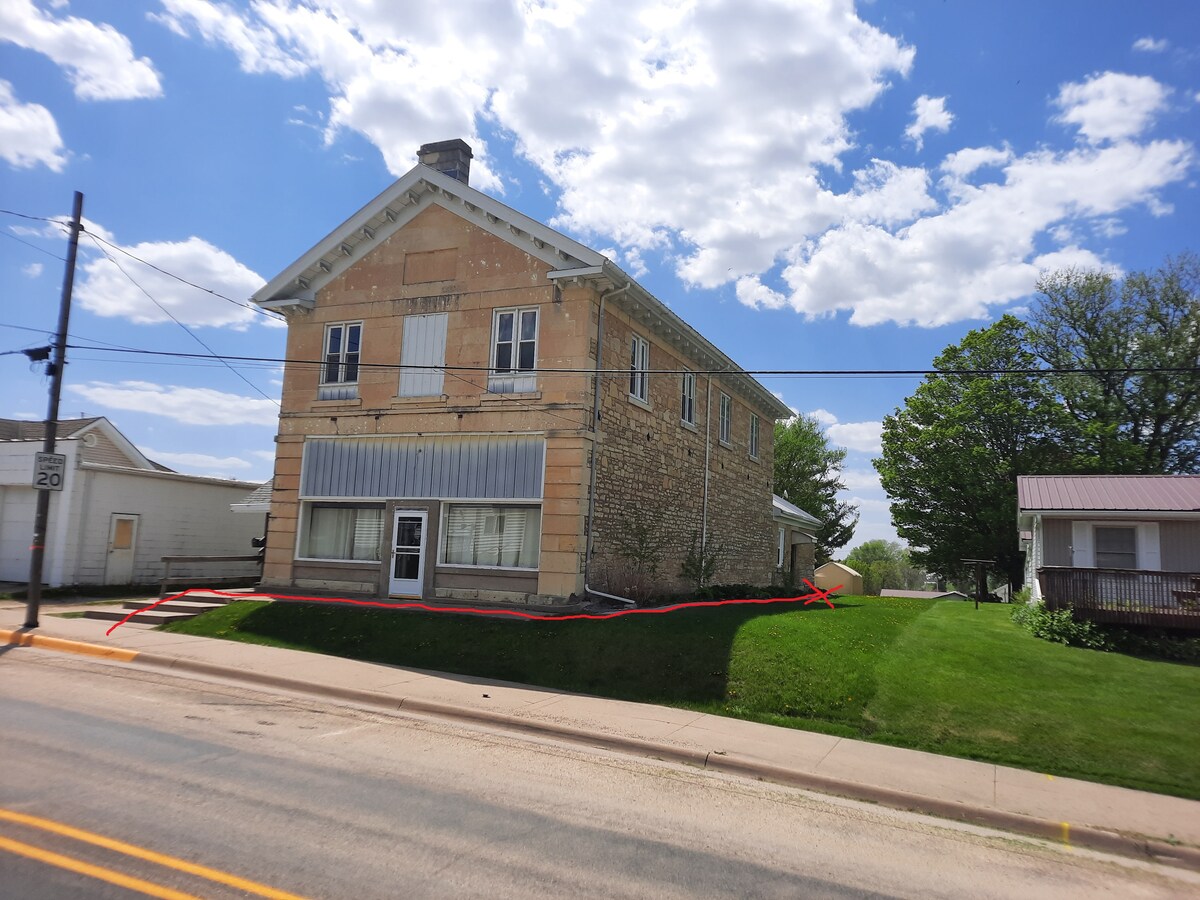 Насолоджуйтеся стильним перебуванням на цьому центральному помешканні, розташованому на сонячній енергії на Airbnb. Усі зручності помешкання в сільській місцевості. Справжня дерев 'яна стіна та олов' яна стеля. Електричний камін, 65-дюймовий смарт-телевізор, пральна/сушильна машина, посудомийна машина, плита, холодильник,кондиціонер тощо. Спати на зручному матраці Nectar queen-size. Диван - це спальний диван з повнорозмірним ліжком для додаткового спального місця. Бари, ресторан, продуктовий магазин та заправки поблизу. В декількох хвилинах ходьби від Дубуке, Поля мрії та гірськолижного курорту Sundown.