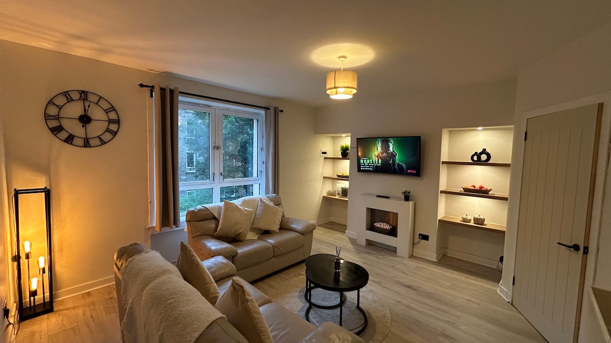 Доступна квартира з 1 спальнею, розташована в західній частині міста, з транспортом на порозі до дороги Байрес, центру міста і далі поля до озера Лох-Ломонд. Простора окрема квартира має власний вхід, може вмістити до 4 гостей і обладнана повністю обладнаною кухнею та ванною кімнатою. На відстані прогулянки знаходяться супермаркети, магазини, спортивні центри, ресторани та бари M&S та Aldi. Ця приватна квартира дійсно є ідеальним місцем для відвідування міста.