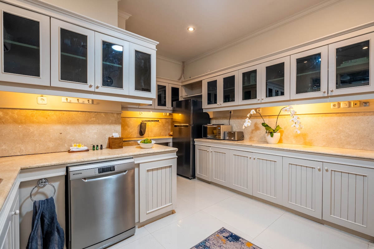 Побалуйте себе. Велика 350 м² (3767 футів ²) приватна розкішна вілла. Приватний 9 метрів (30 футів, басейн). Великі вітальні, обідні зони та спальні з кондиціонером. Велика кухня, побутова техніка .Приватна домробітниця. Розумне безкоштовне прання. Магазини, ресторани, спа-салони та 6 км білого піщаного пляжу за 1-8 хвилин ходьби. Цілодобова безпека. Консьєрж. Керував 17-річною компанією-переможцем нагород TripAdvisor. Сертифікований CHSE Чистий, здоровий, безпечний та екологічно чистий. *Ціна враховує максимум 1 ліжко за гостя. Заблоковано надлишок Bedrms.