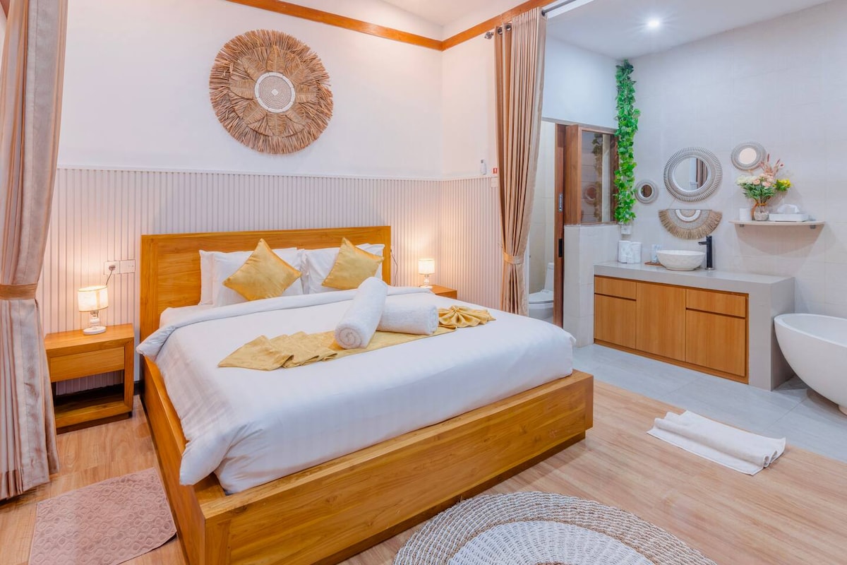 - BREAKFAST included - FREE Airport pick up min. 4 nights stay A charming tropical villa retreat in Legian–Seminyak, Bali, thoughtfully designed for couples and honeymooners seeking a private and relaxing escape. Conveniently located just 1.6 km from Padma Beach and Azul Beach Club, the villa offers both tranquility and easy access to Bali’s popular coastal spots. Part of an exclusive villa complex, the Grand 1 Bedroom Villa features private Pool, Sunbed, in-room Bathtub, and a romantic Swing
