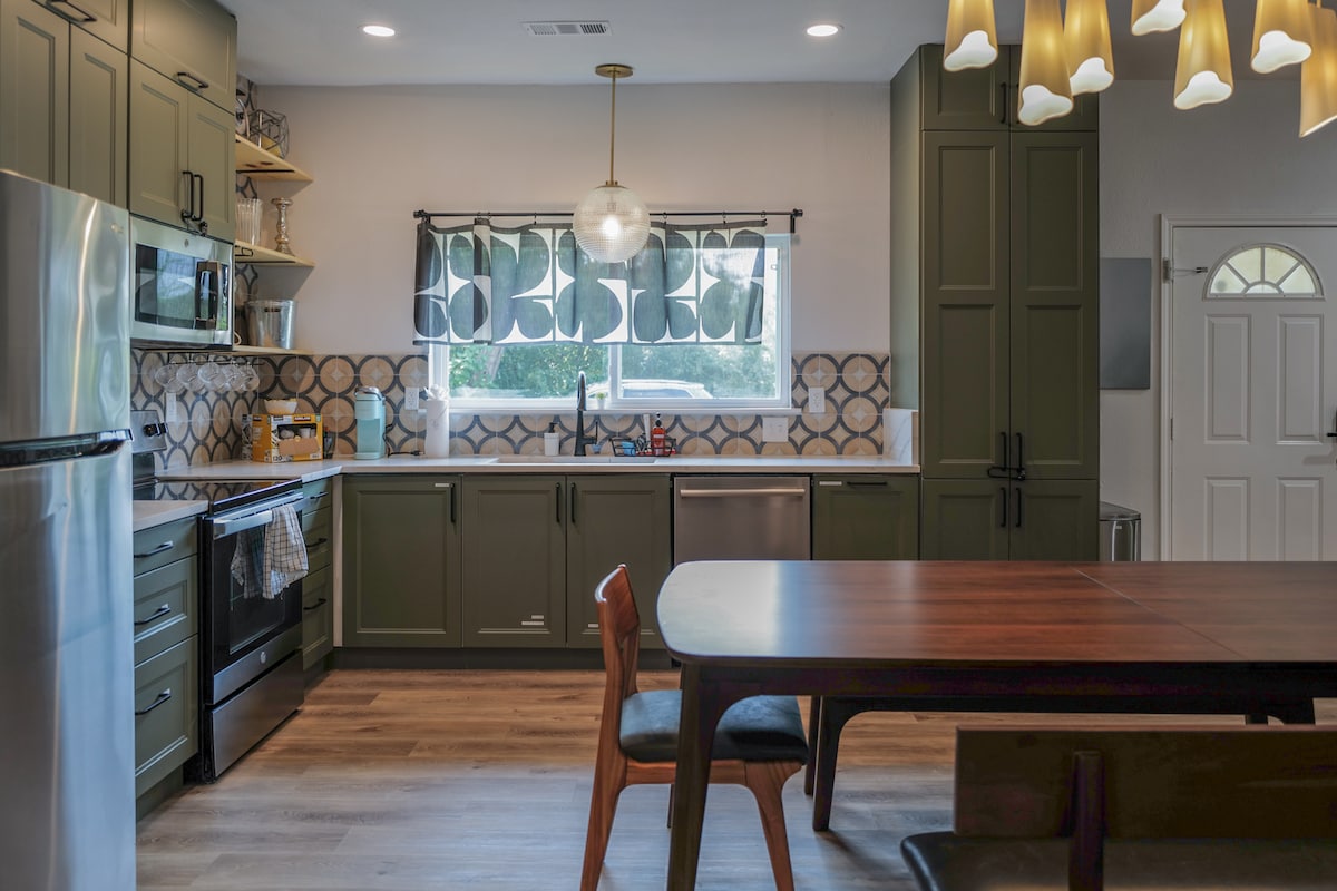 Відчуйте найкраще перебування в цьому історичному помешканні завдяки сучасним оновленням всього в двох кварталах від площі Дентон. Зручна прогулянка до Університету Північного Техасу, нашого громадського ринку, фантастичного нічного життя та ресторанів, які може запропонувати Дентон. Еклектичний комфорт буде основною перевагою вашого перебування з сучасною кухнею, ванною кімнатою, яка заслуговує на захоплення, з безкінечною гарячою водою та душовою лейкою у формі водоспаду. Літо, і сад просто чудовий. Час розслабитися й насолодитися чарівним відпочинком у помешканні та на вулиці.