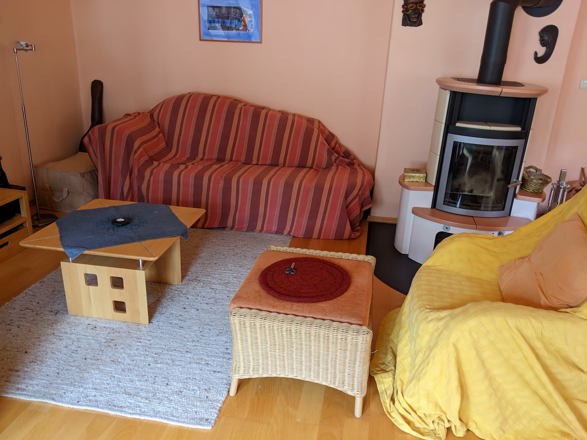 Willkommen in meinem gemütlichen Heim mit Blick in den Garten! Im März 2025 wurde renoviert und lädt somit mit den großen hellen Fenstern zum verweilen ein. Die geräumige Wohnung bietet genug Platz für bis zu 8 Gäste und ist somit ideal für größere Gruppen oder Familien. -sehr schnelles WLAN -einfaches Check in - mit detaillierter Anleitung -Handtücher,Bettwäsche und weitere Annehnlichkeiten im Bad. -Föhn & voll ausgestattete Küche zum kochen -moderne Einrichtung
