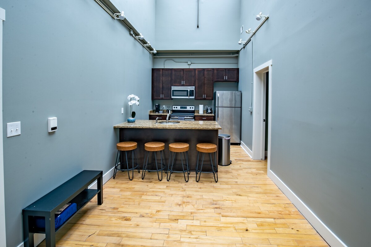 Downtown Grand Rapids Loft Modern, шикарне життя з відкритим дизайном, поліровані підлоги та всіма зручностями помешкання. Найкраще розташування, до ресторанів, магазинів і визначних пам 'яток можна дістатися пішки. Гість надає знижку 10% на один із найкращих барів у Греції прямо внизу! Наша квартира з двома спальнями також включає диван-ліжко, що дозволяє комфортно спати 5 осіб. Повністю обладнана кухня з посудом, каструлями та сковородами, тарілками, ножами тощо. Кава Keurig включена! Це дуже просторе помешкання!