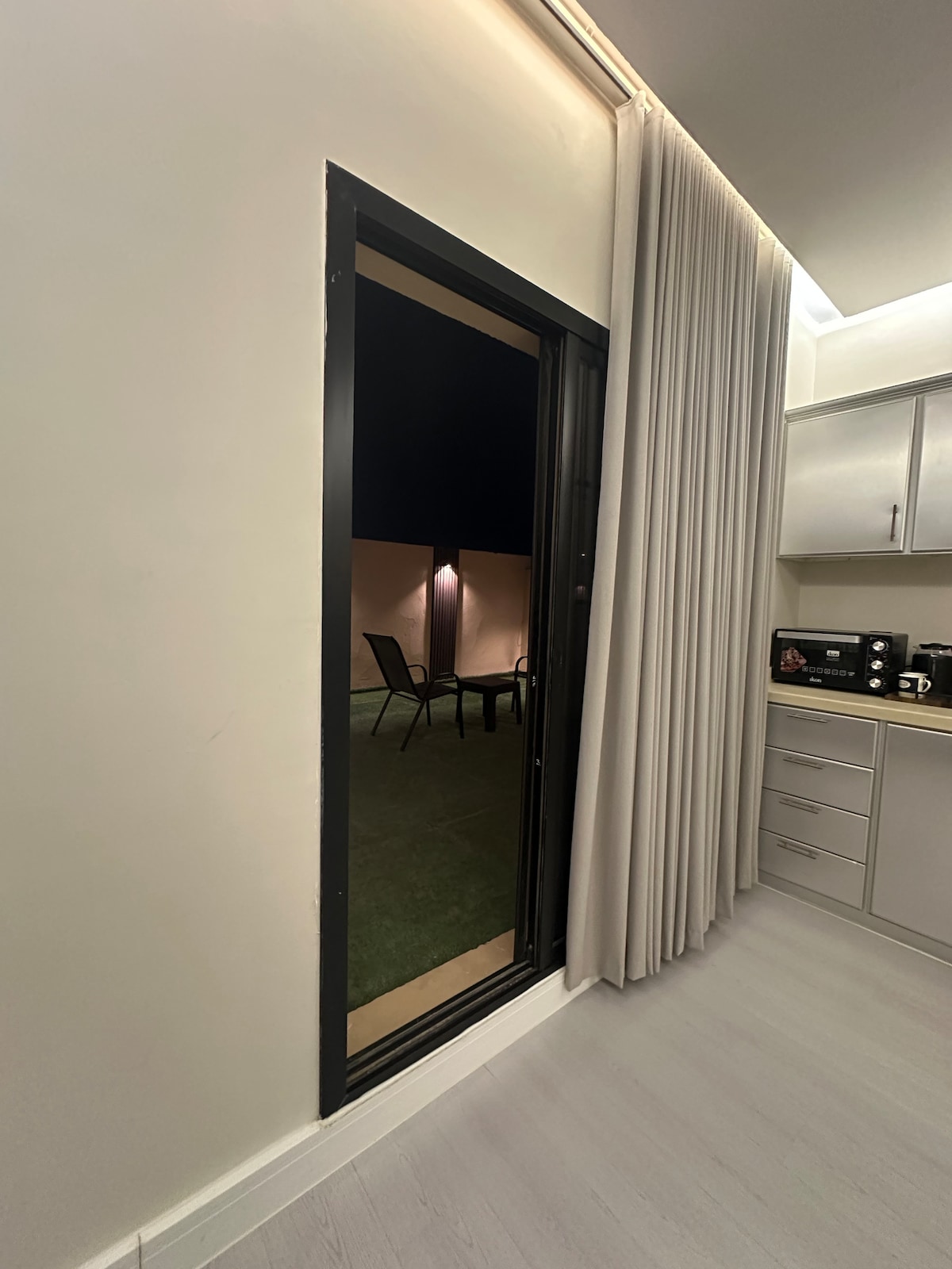 شقة فاخرة في شمال الرياض ومصممة لتكون مختلفة و أنيقة بحديقة خارجية ، تتمتع بخصوصية تامة ودخول ذاتي . موقع استراتيجي 📍 تقع على بعد : 15 دقيقة بالسيارة من موسم الرياض.🌟 10 دقائق من الرياض بارك. 🛍️ 13 دقيقة من مركز الملك عبد الله المالي. 🏙️ 18 دقيقة من مطار الملك خالد الدولي.🛫 تتكون من غرفة وصالة ومطبخ أمريكي وحديقة خارجية خاصة.