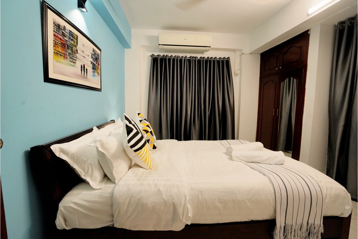 Це добре освітлена та нещодавно мебльована квартира. У ньому є 2 спальні кімнати (1 кондиціонер), а головне ліжко має gizer, Almirah, великий смарт-телевізор Wi-Fi з 24/7 Full HD DTH підключення, включаючи місцеві та інт .н. канали, великий холодильник, мікрохвильова піч, очищувач води, високошвидкісний Wi-Fi 24/7, коробка першої допомоги, вешалка для білизни, дивани, столи для читання/ноутбука, газовий камін, кухонне приладдя, стіл для обіду з необхідними предметами, чисті простирадла, рушники, ковдри тощо.