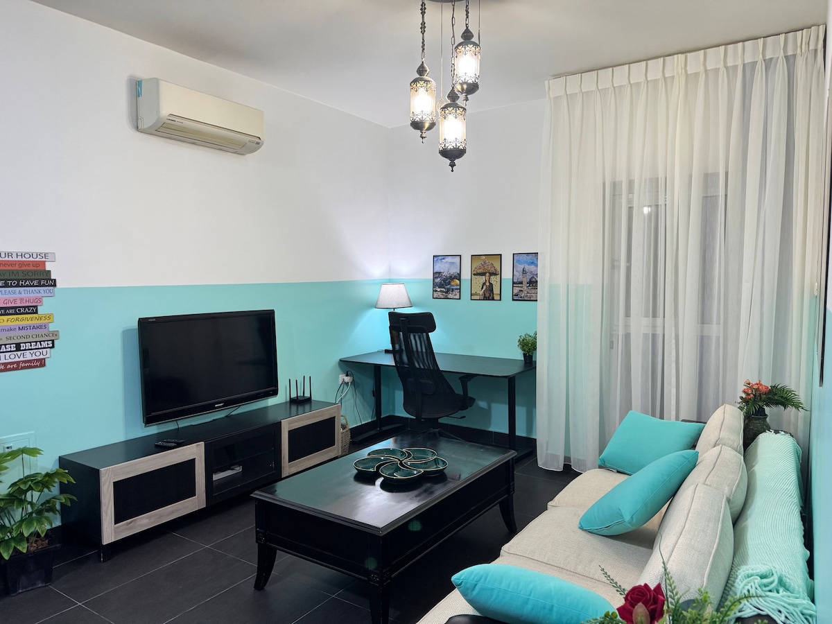 "Welcome to our modern, family-friendly apartment in a quiet area! Enjoy comfy spring mattresses, super-fast internet, a smart TV with Netflix, and a fully equipped kitchen. Relax on the lovely balcony and explore Amman easily. Shops, restaurants, and supermarkets are just 2 minutes away. Clean, cozy, and ready to make your stay perfect!"