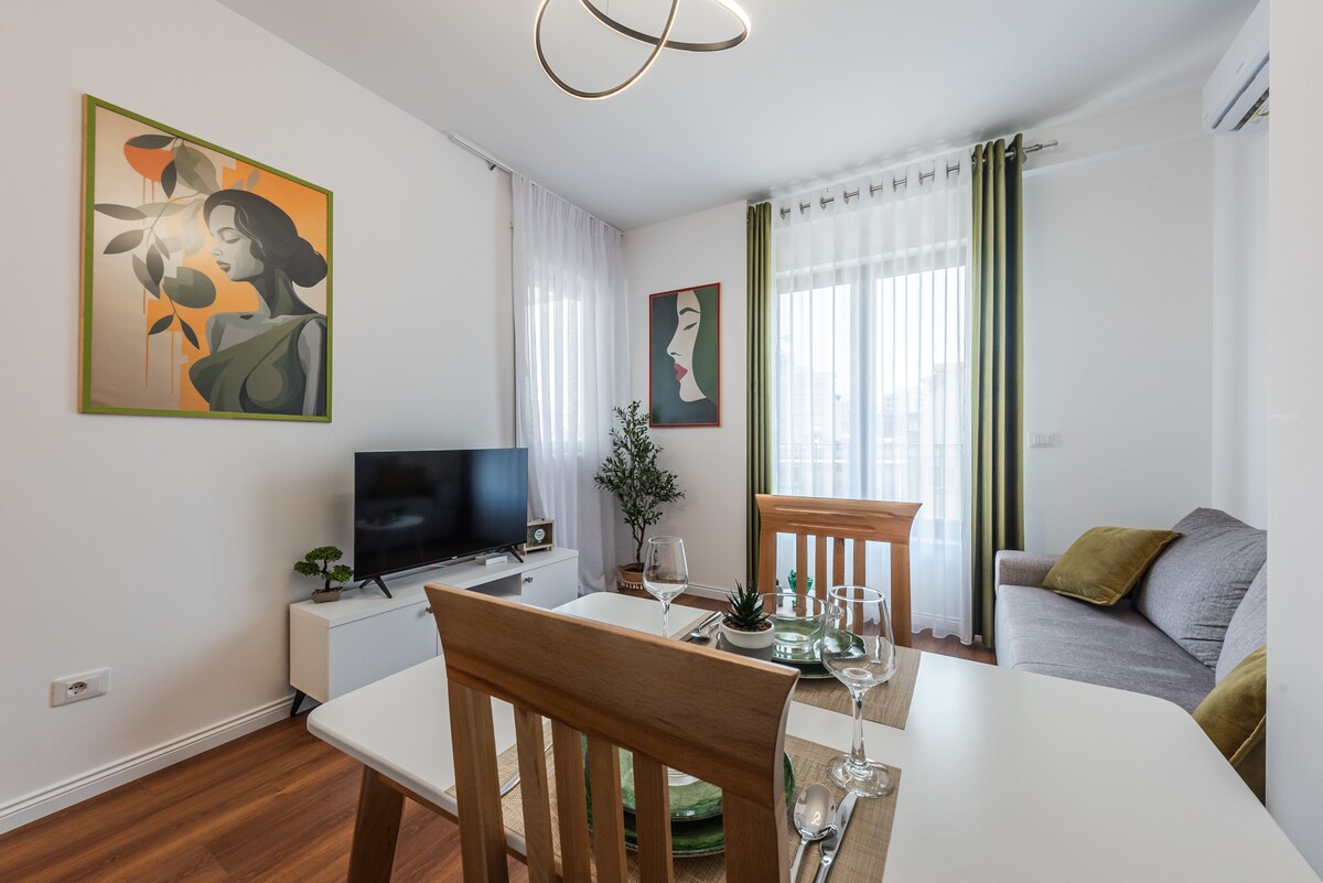 У цьому спокійному помешканні, розташованому в центрі міста, все буде просто. Olivia - це сучасна квартира 1+1 з оливковим зеленим акцентом, створюючи теплу та розслаблюючу атмосферу. Розташований недалеко від залізничного вокзалу, він пропонує легкий доступ до міста. Зручна спальня та світла вітальня доповнюються прекрасним балконом, який ідеально підходить для ранкової кави або вечірнього відпочинку. Ідеально підходить для тих, хто шукає стиль і зручність.