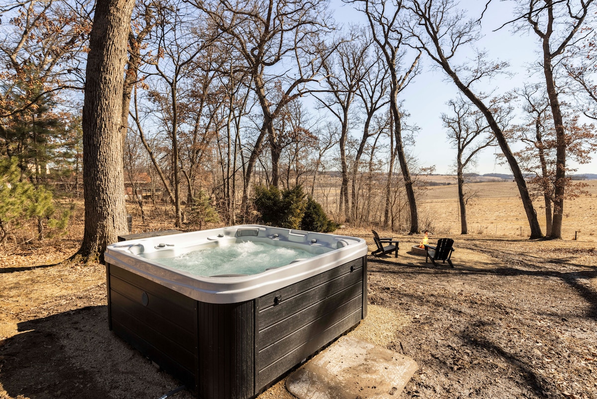 🌿 Затишна хатина, розташована в тихому лісі Вісконсина, – ваше ідеальне місце для весняного відпочинку. Насолоджуйтеся свіжим повітрям, квітучими деревами та спокійними лісовими стежками просто за дверима. Розслабтеся в гідромасажній ванні надворі під зоряним небом, збирайтеся ввечері біля чаші для багаття (візьміть із собою власні дрова або наберіть їх на території помешкання) та милуйтеся кізками й курями, які вільно гуляють територією помешкання. Затишне, приватне місце для відпочинку для пар, невеликих сімей або тих, хто бажає розслабитися на природі. 🌿