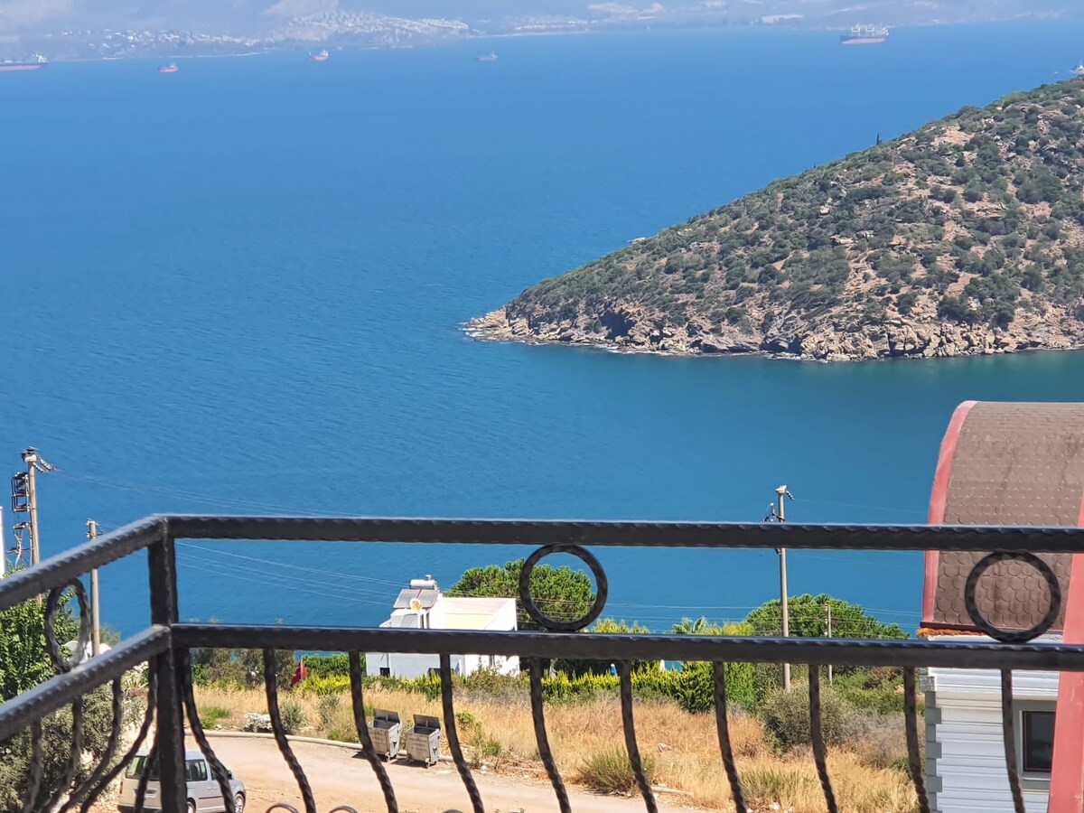 Наш будинок у Босфорі Бодрума знаходиться за 100 метрів від моря. Це гігієнічна квартира з повним видом на море з власним пляжем, кільцевим обслуговуванням на території,спортивним майданчиком. Ви можете спуститися на пляж за 5 хвилин пішки без автомобіля. 2. У нашій квартирі 1+1 на поверсі є двоспальне ліжко та 2 дивани-ліжка. Поруч аеропорт, продуктовий магазин, ринок. Ви можете насолоджуватися заходом сонця на балконі. Доступний Wi-Fi.🐱🐶ДОМАШНІ ТВАРИНИ НЕ ДОПУСКАЮТЬСЯ.