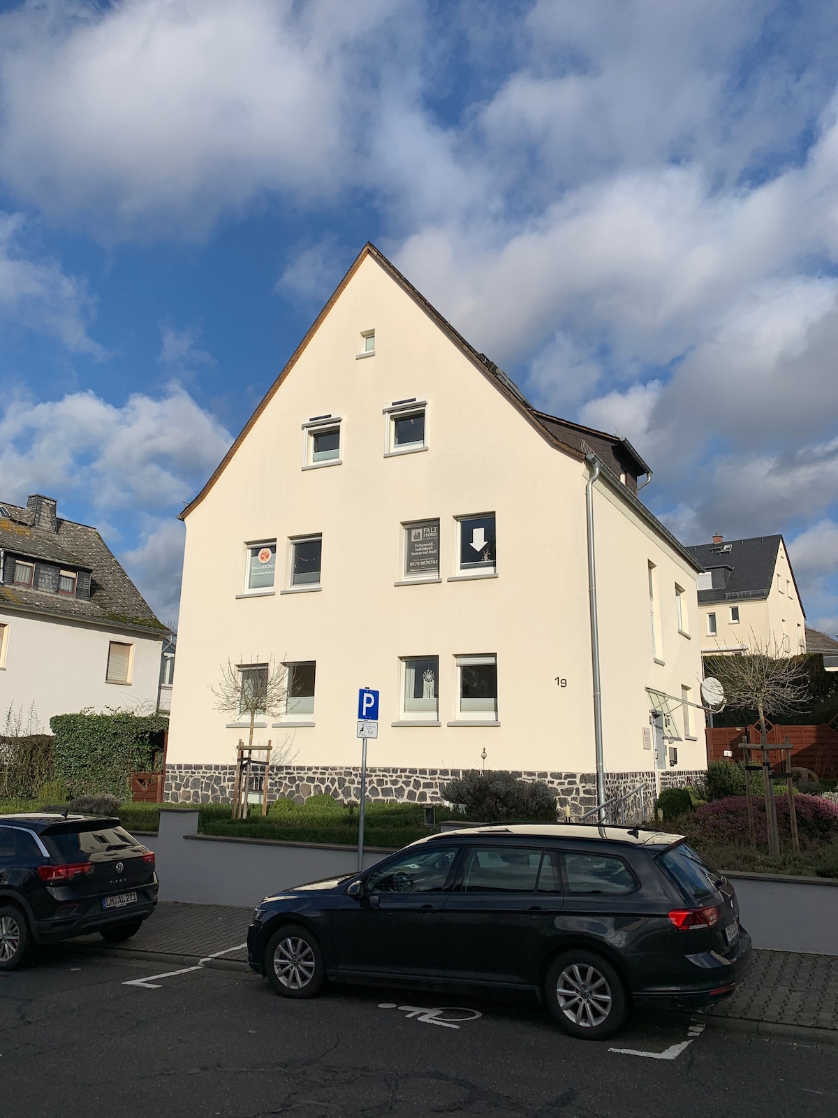Ruhig gelegene und gemütliche 3-Zimmer-Wohnung (68qm), voll ausgestattet, auf Wunsch mit kostenlosem Stellplatz; Duschbad, Balkon (8qm), 12min zur Stadtmitte, Bus-Anbindung, 200m zum REWE. Gastgeber leben separat im gleichen Haus und sind somit vor Ort ansprechbar. Öffentliche Ladestation i.d. Nähe. A quiet and comfortable 3-room-flat (68sqm); balcony (8sqm); only a 12min walk from the city centre, Bus stop nearby; supermarket 200m, reserved parking available.