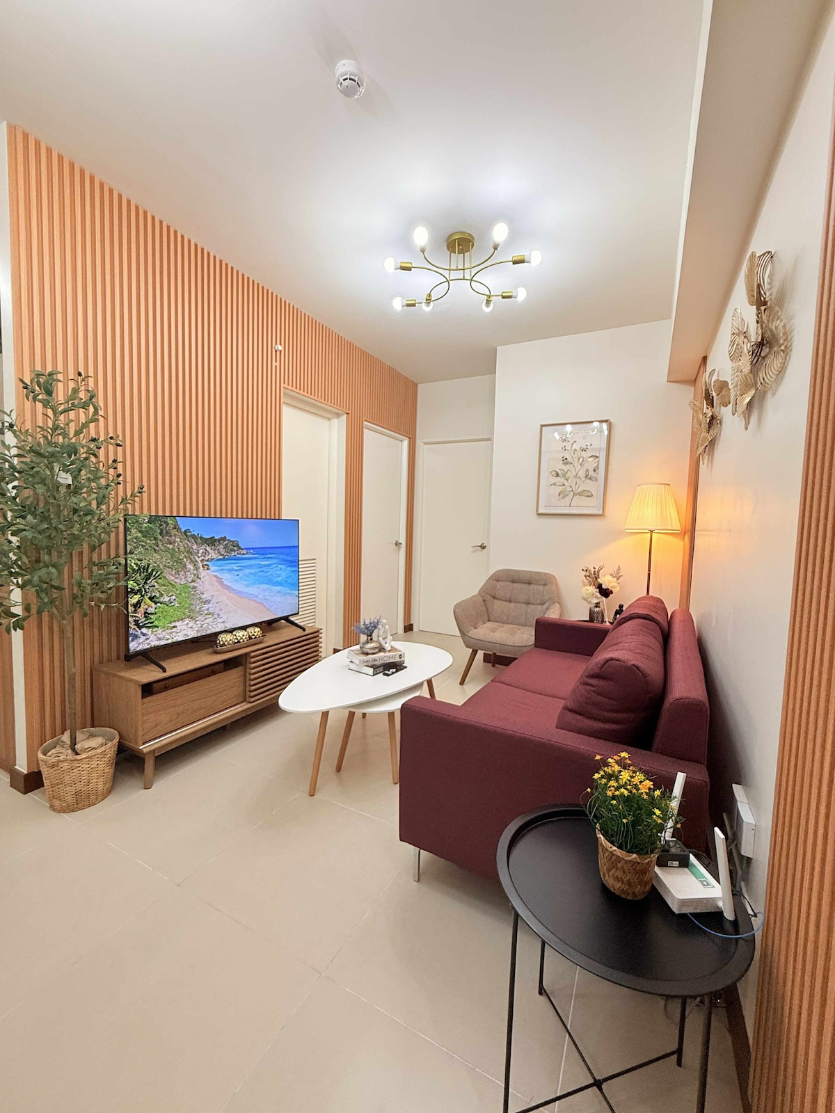 Сучасне помешкання в тропічному стилі в M Place @ South Triangle Tower D, Panay Ave., Кесон-Сіті. Насолоджуйтеся високошвидкісним Інтернетом, смарт-телевізором з Netflix, міні-кухнею (без можливості готувати їжу) та затишним робочим місцем. Розташована в жвавому комерційному центрі з продуктовим магазином, банком, їдальнею, пральнею та кафе на першому поверсі — ідеально підходить для відпочинку, але зручна для перебування в центрі міста.