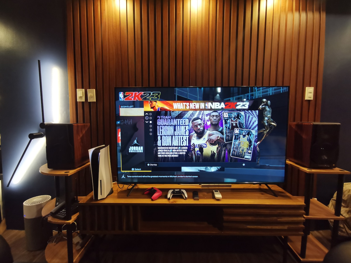 Ігрова консоль Playstation 5 Назва кондомініуму: Mplace South Triangle Розташування: проспект Мати Ігнація біля ABS CBN Особливості: *Playstation 5 *65-дюймовий телевізор 4k HDR Smart TV *Потрібно спробувати матрац на ліжку. (Краще, ніж готелі) *Аудіосистема Edifier S3000 (відмінна звукова система) * Волоконно-оптичний Інтернет зі швидкістю 50 Мбіт/с. *Преміальний акаунт Netflix. *Гарячий і холодний душ *Кухонне та обіднє приладдя.
