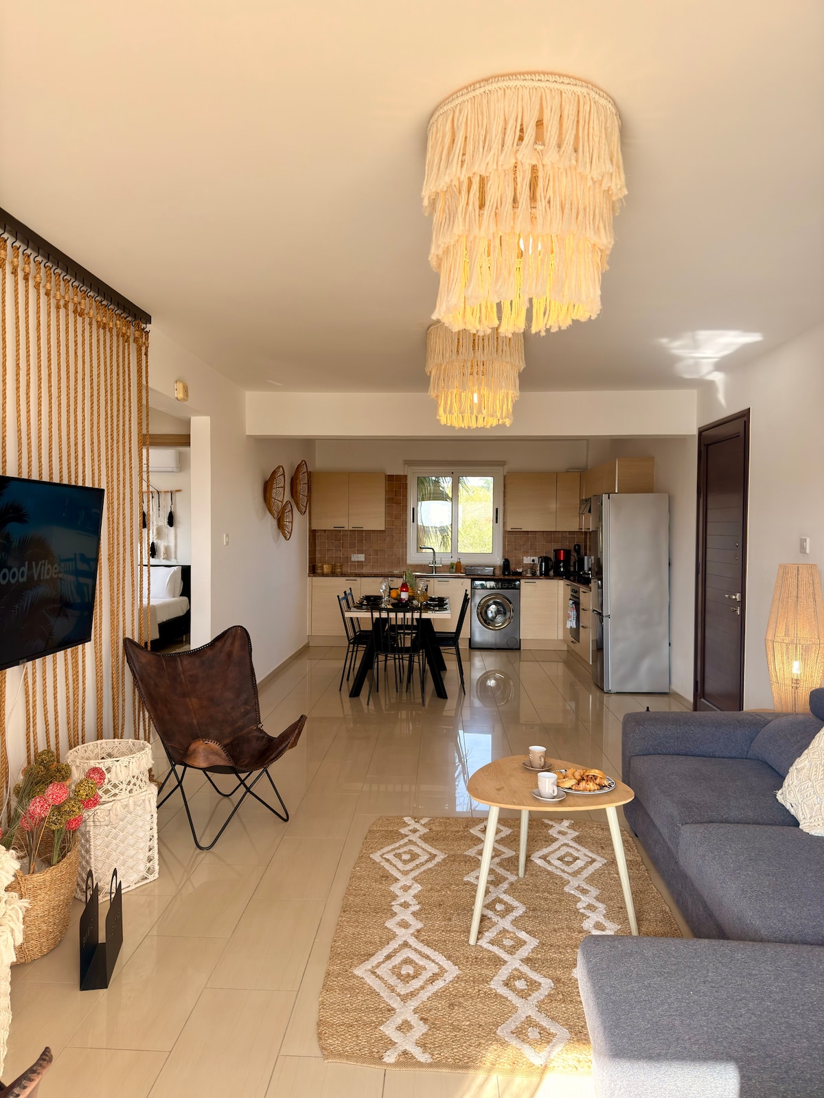 Завітайте до цієї красиво оформленої квартири з 2 спальнями, що знаходиться всього в 5 хвилинах ходьби від знаменитого пляжу Ніссі. Курортний готель розташований у тихому районі та пропонує великий спільний басейн і окремий дитячий басейн. Усередині стильні деталі з мотузки та теплий природний декор створюють унікальну, розслаблюючу атмосферу. Квартира повністю обладнана кавомашиною, пральною машиною, духовкою, швидким Wi-Fi тощо. У кожній спальні є власний телевізор, а також додатковий телевізор у вітальні для повного комфорту.