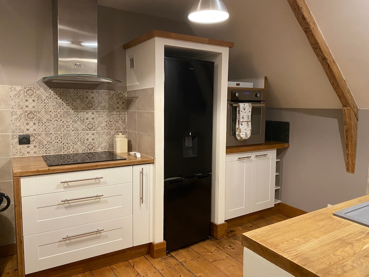 Романтична інтерлюдія в позачасовому оточенні, де автентичність поєднується з комфортом. Ця чарівна квартира розташована в центрі історичного центру Дінана на 3-му поверсі елегантної будівлі XVIII століття. Насолоджуйтеся повністю обладнаною кухнею, затишною спальнею з двоспальним ліжком, диваном-ліжком, Wi-Fi та свіжою білизною — усім необхідним для спокійного відпочинку. Вийдіть на вулицю та відкрийте для себе середньовічну красу Дінана: вали, ресторани та бруковані вулиці – усе це знаходиться всього за декілька хвилин ходьби.