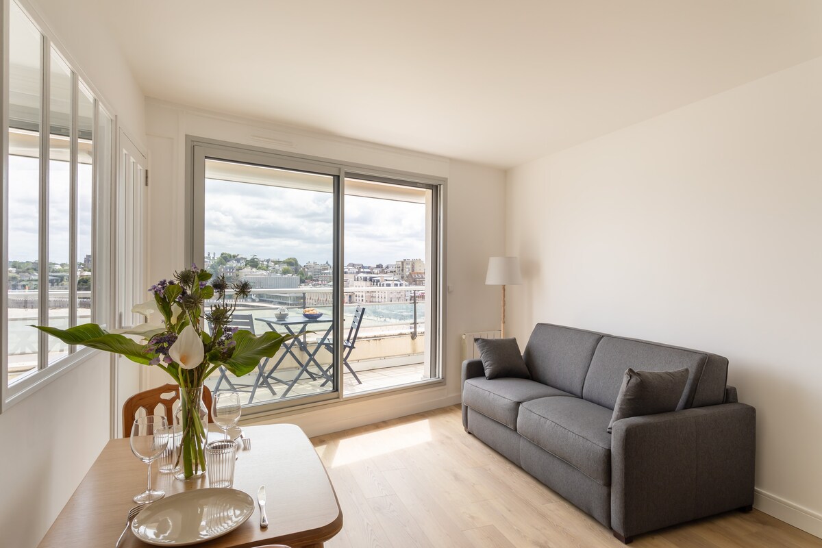 Відкрийте віконниці з видом на море, спустіться ліфтом до Plage de l'Ecluse і знайдіть набережну Clair de Lune, що купається у світлі. Ось що пропонує ця квартира, розташована в колишньому культовому готелі в Дінарі, повністю перепроектованому архітектором у 2018 році. У самому центрі Дінара, пляж, кінотеатр, всі магазини та ресторани біля резиденції та знаменитий ринок за 5 хвилин ходьби. Чудове перебування для сімей або груп друзів у перспективі.