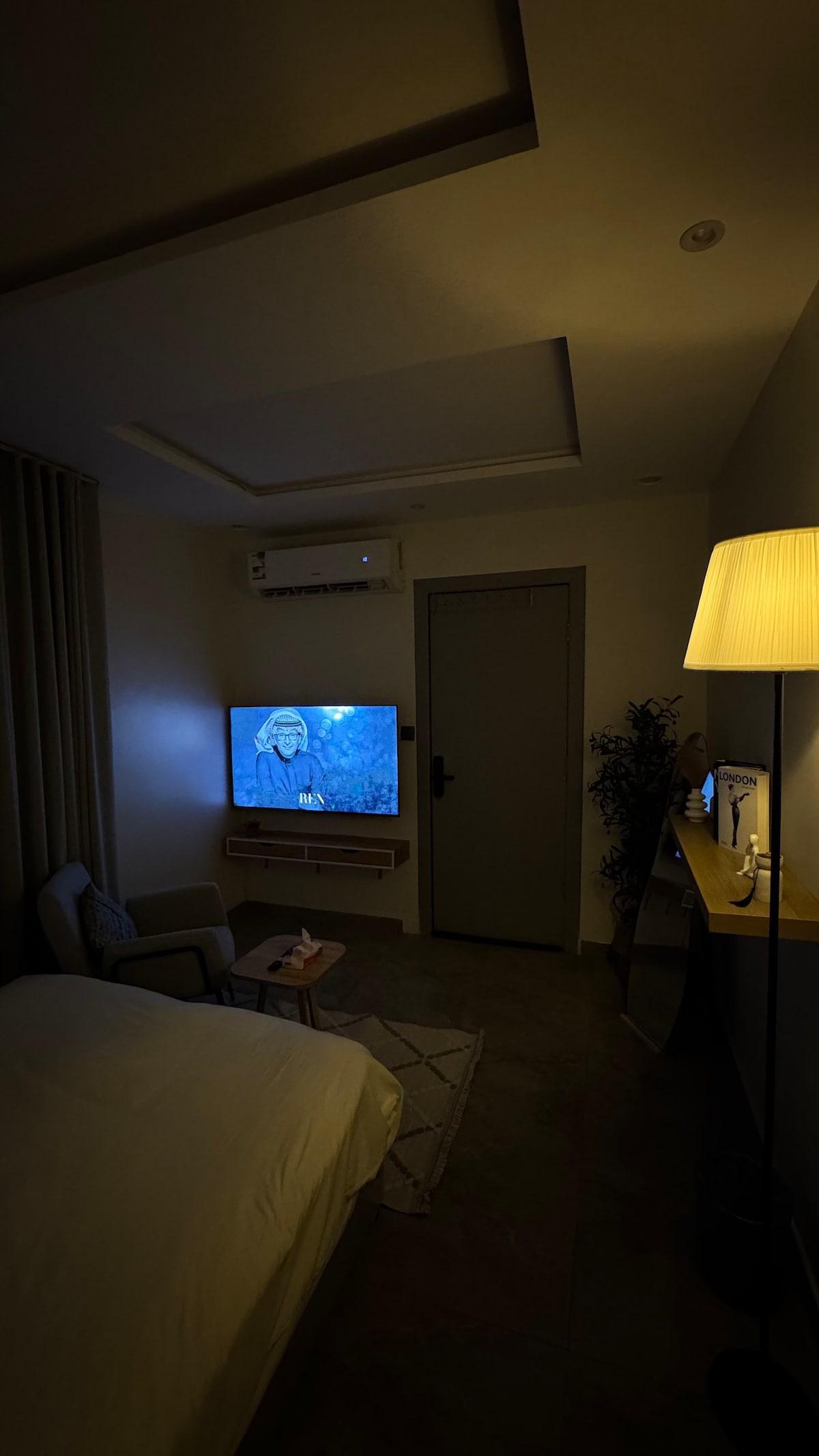 Сучасна студія з окремим входом, розташована в районі Хаттін, недалеко від бульвару та всіх заходів за Сад-сквером. Характеризується сучасним дизайном, комфортними та спокійними кольорами, вишуканими меблями, а також 65-дюймовим смарт-телевізором, на якому є всі додатки (Netflix, Shahid, OSN) Є високошвидкісний Інтернет, а також спеціальний куточок для кави з аксесуарами, холодильник, електричний чайник, а також мікрохвильова піч. Також у ванній кімнаті є шампунь, кондиціонер, рушники та тапочки. Студія характеризується спокоєм, розслабленням та приватністю для тих, хто хоче спокою та комфорту.