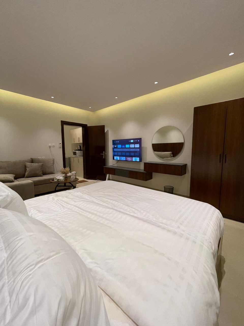Студія та Сейя 🏨 Розташування: район Хіттін | Ер-Ріяд 📍 Поруч із усіма послугами та подіями 🛍️🎢 - Площа Саад: 3 хвилини. - Вулиця Ер-Ріяд: 5 хв. - Долина Лейсон: 10 хв. - Фінансовий район (KAFD): 15 хвилин. - Парк Ер-Ріяд: 13 хвилин. - Аеропорт: 17 хвилин. Складається з: Ліжко + вітальня + кухня + ванна кімната Послуги: • Інтелектуальний вхід • Холодильник • 58-дюймовий смарт-телевізор • Щоденне прибирання • Високошвидкісний Wi-Fi