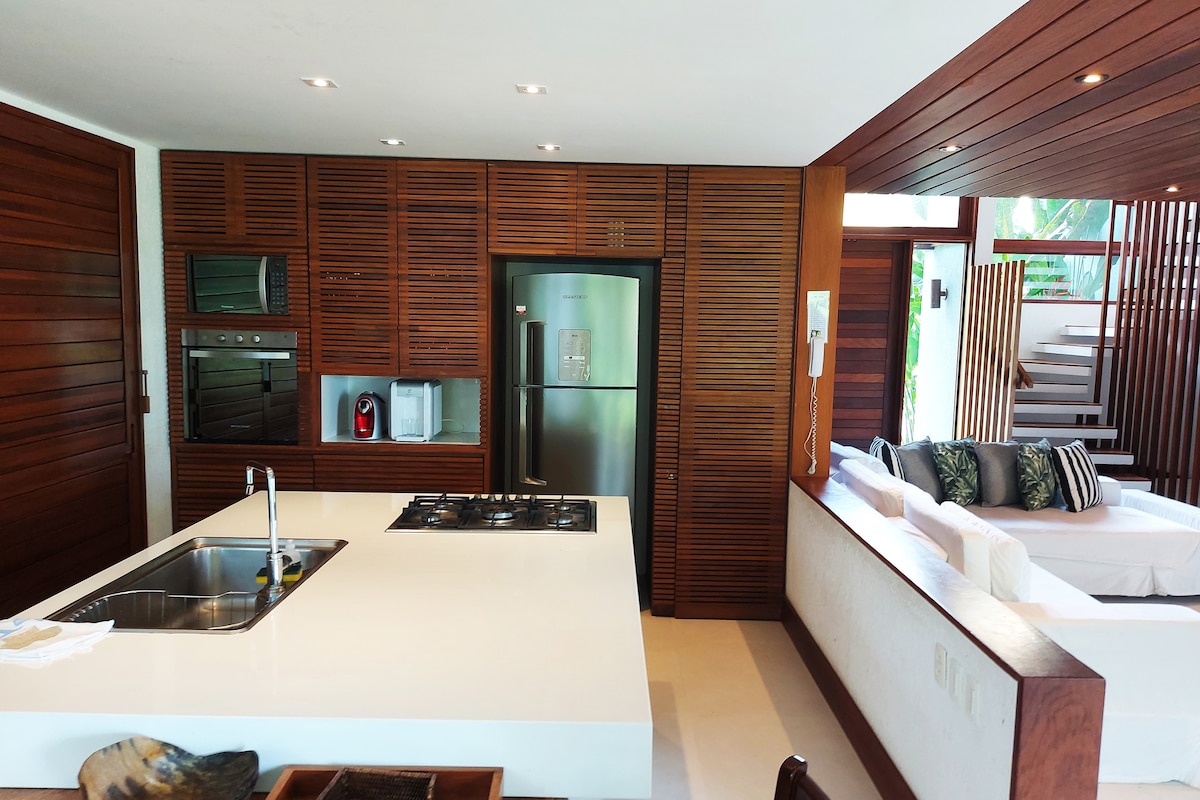 Чудовий будинок у кондомініумі Terravista Villas, найексклюзивніший комплекс у Латинській Америці з видом на ліс, і поруч із басейном кондомініуму на полі для гольфу (до 11 зелених зборів), одноденне використання в клубі mediterrannée (знижка 50%), ексклюзивний кондомініум на скелях Транкосо з приватним доступом до пляжу 2 апартаменти (один з ліжком Super King size, а інший - 3 односпальними ліжками). Супер обладнаний кондиціонером, настільним столом, повноцінною кухнею та зоною обслуговування з пральною/сушильною машиною.