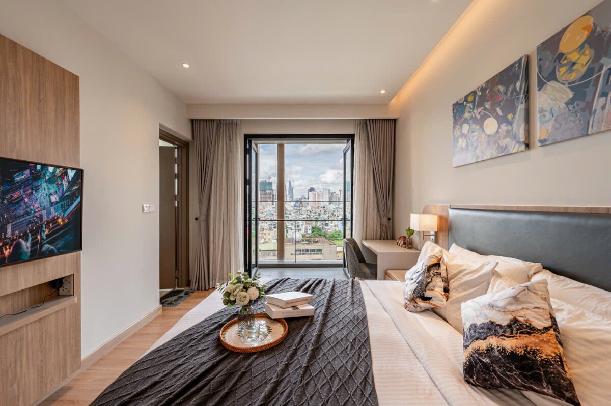 Ця 5⭐️ розкішних квартир площею 100 м² в районі 1, чудове розташування поблизу Bui Vien (500 м), ринку Бен Тхань (1 км) та пішохідної вулиці Нгуєн Хюе (1,5 км) з видом на Bitexco. У квартирі є 3 спальні (3 ліжка, включаючи 3 ліжка «king-size» 1 м 8x2 м), 2 ванні кімнати та повні зручності, такі як басейн з панорамним видом, щоб побачити всі культові будівлі міста, тренажерний зал та сауна. Затишний дім далеко від дому в цій сучасній будівлі.