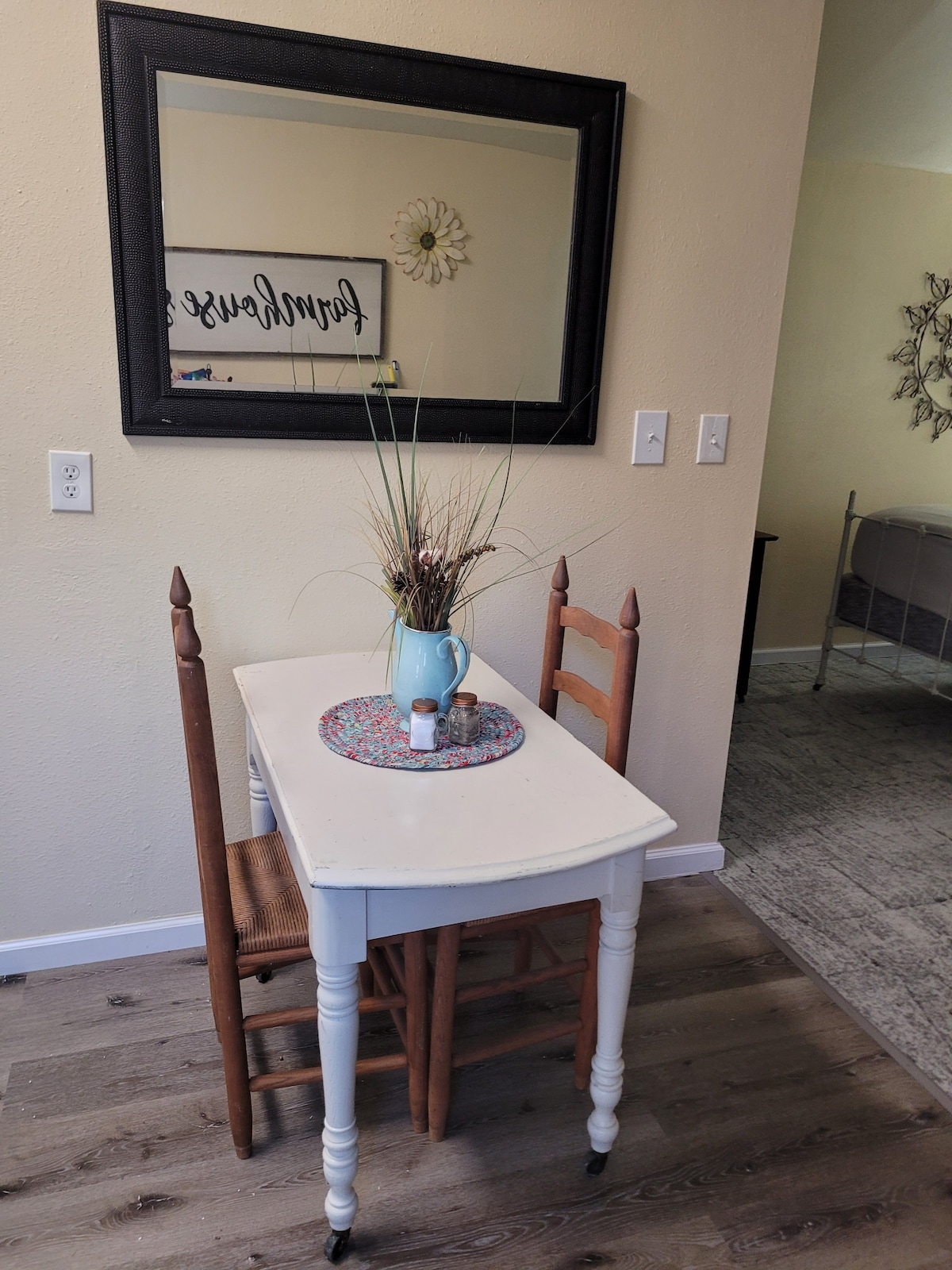 Наш гостьовий будинок Oak Retreat, оточений красивими дубами, - ідеальне місце, щоб насолодитися спокоєм країни! Всього в 15 хвилинах на північ від Бонхема, розташованого між озером Бонхем і нещодавно побудованим озером Буа Д’ Арк, ви знаходитесь всього в декількох хвилинах ходьби від магазинів, ресторанів і відпочинку. Побудована в 2021 році, це студія в стилі фермерського будинку площею 750 кв. футів, яка ідеально підходить для пар або пари з маленькою дитиною. Красиві склепінчасті дерев 'яні стелі та антикварні меблі повертають вас у часі!