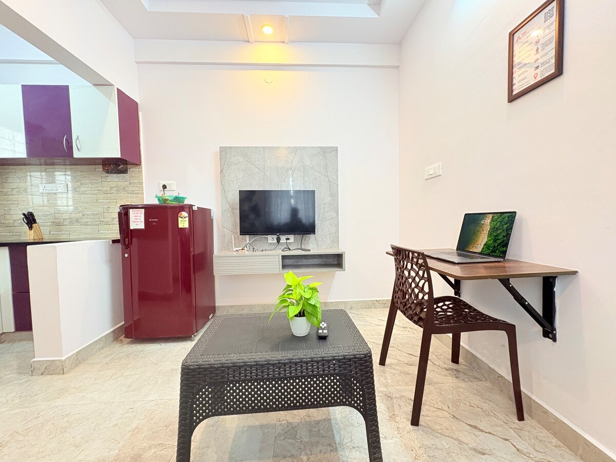 Відпочинок у стилі Clam, 1 спальня ☀️ Відчуйте себе як удома в нашій прохолодній квартирі 1BHK з приголомшливими краєвидами, ідеально підходить для професіоналів і сімей. Розташована поблизу Infosys & Wipro, насолоджуйтеся сучасними зручностями: пральна машина, холодильник, мікрохвильова піч, плита, чайник, кавоварка, Wi-Fi, 55-дюймовий смарт-телевізор та настільний теніс. Можна перебувати з домашніми тваринами, закритий комплекс для додаткової безпеки. Відпочиньте на балконі з панорамним видом. Забронюйте зараз, щоб отримати ідеальне поєднання комфорту, зручності та спокою!