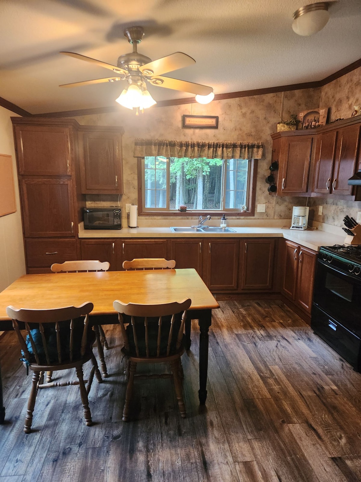 Eagle River Trailside is right in Eagle River directly on the atv/snowmobile trail. 5 minute walk to downtown or Cranberry Fest. Launch your boat on the chain nearby in summer. 100 foot long and flat driveway for parking. Central air conditioning, 2 bedrooms, 1 bathroom with shower/tub, kitchen, and living room. WIFI with Hulu and Roku TV is included. We provide a pet free stay so we cannot accept service animals or pets. Extra guests over four will be charged a $100 per night fee.