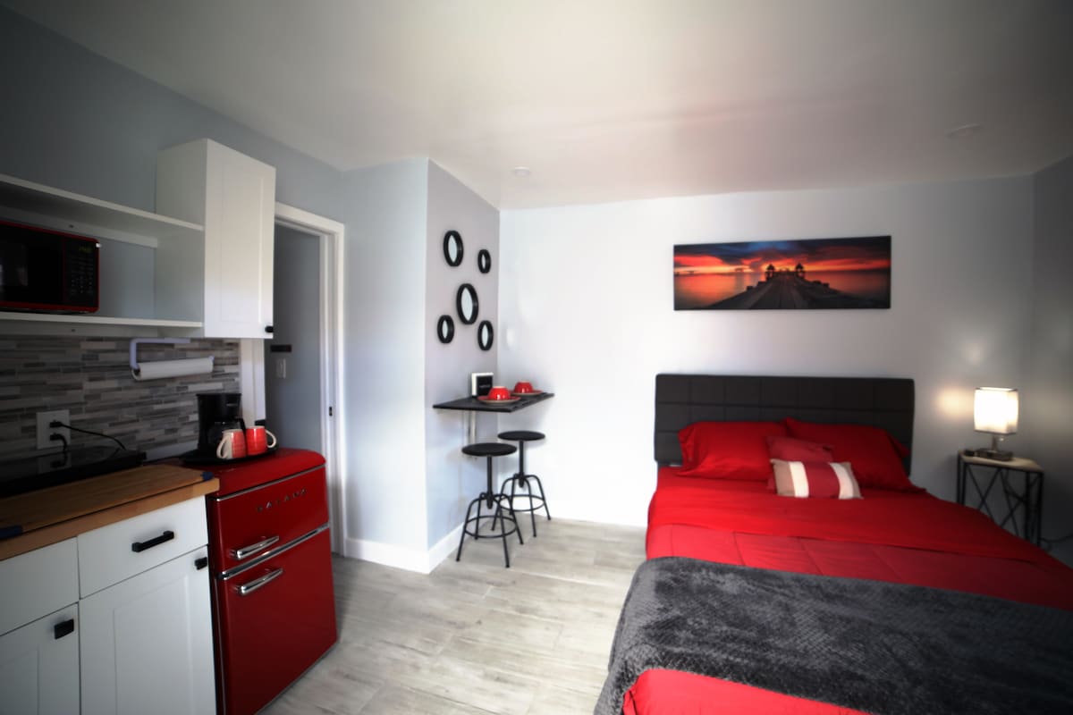 - ПОВНІСТЮ ПРИВАТНА КРАСИВА СТУДІЯ; Красива студія поруч із усім!!! 5 хвилин від Airpot, Wynwood, Design District, South Beach, Port, Brickell, AAA, - Ліжко king-size - Приватний паркінг. - Повністю укомплектована кухня, а також Wi-Fi, смарт-телевізор. - 6-зіркова гостинність - Пральна та сушильна машини на території можна використовувати безкоштовно. - Помешкання - 1 з 4 Airbnb на території помешкання. - Плата за домашніх тварин у розмірі 100 $ за перебування. - Примітка: два домашні тварини коштуватимуть 150 $ за перебування ( не застосовується для довготермінових бронювань)