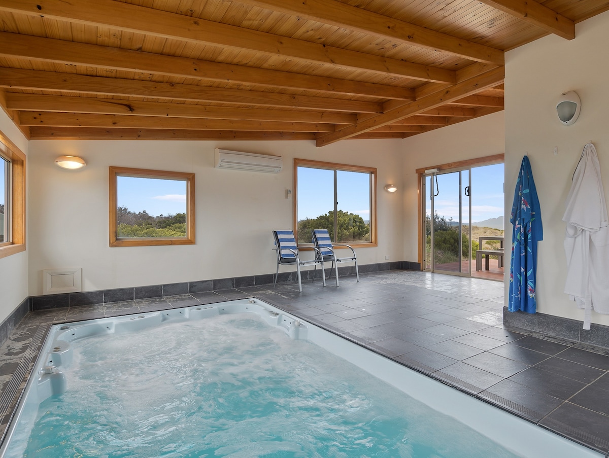 Цей повністю приватний відпочинок - ідеальний відпочинок для пар, які шукають романтичну інтерлюдію в напруженому житті, а також для друзів і сімей, які проводять інтимний і якісний час разом або святкують ці особливі дати. Розташований на 5 акрах, повністю екранований від дороги прибережним лісом, Peace & Plenty має власний 200-метровий океанський пляж, всього 70-метрова прогулянка по приватній доріжці. До послуг гостей якісні зручності, критий басейн з підігрівом до 34 градусів цілий рік і сезонний овочевий сад.