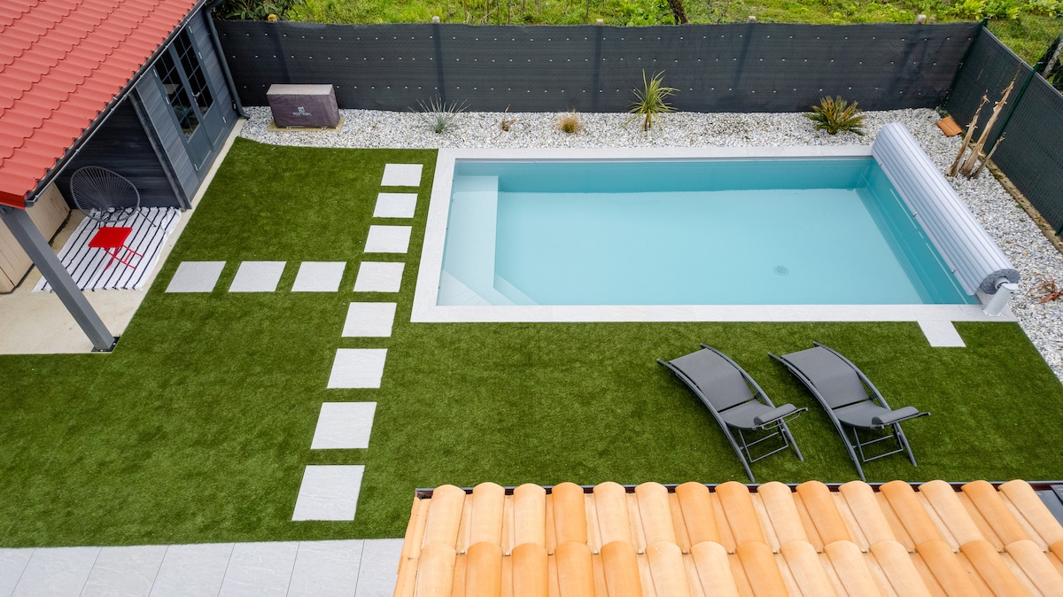 Superb property of 2 separated houses, in the city center of Dolus d'Oléron. In a non passing street, close from a small place. Entirely renovated, fully furbished and equipped with taste. The main house, the Swallow, is made of a large and luminous living room with a direct view to the pool, Open kitchen, and under the roof space for children. 4 bedrooms including 2 parental suites, and 1 additionnal bathroom. Seprated WCs. Large and opened, it will be the ideal living space for all your stay.