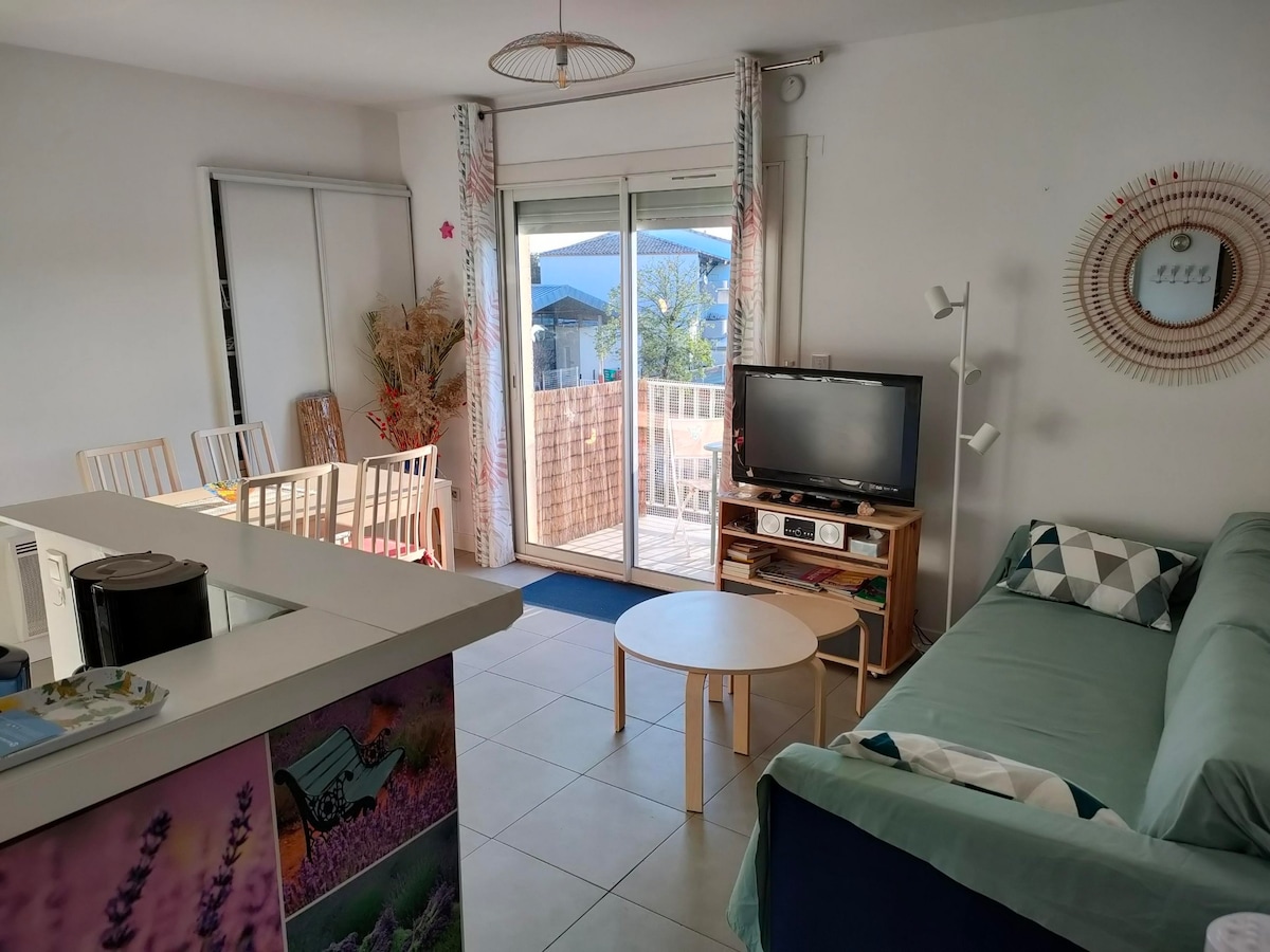 Квартира площею 40 м², розташована на 2-му поверсі резиденції з ліфтом з видом на море, з прямим виходом на пляж. Ідеально підходить для 4 дорослих і 2 дітей. 1 велика спальня: двоспальне ліжко, шафа. Вітальня: за допомогою клацання клацання Кухня: посудомийна машина, 4 газові пожежі, комбінована духовка, холодильник, тостер, кавоварка та чайник. Ванна кімната(відремонтована):душова кабіна, раковина та пральна машина; окремий туалет. приватний паркінг із прямим доступом до пляжу