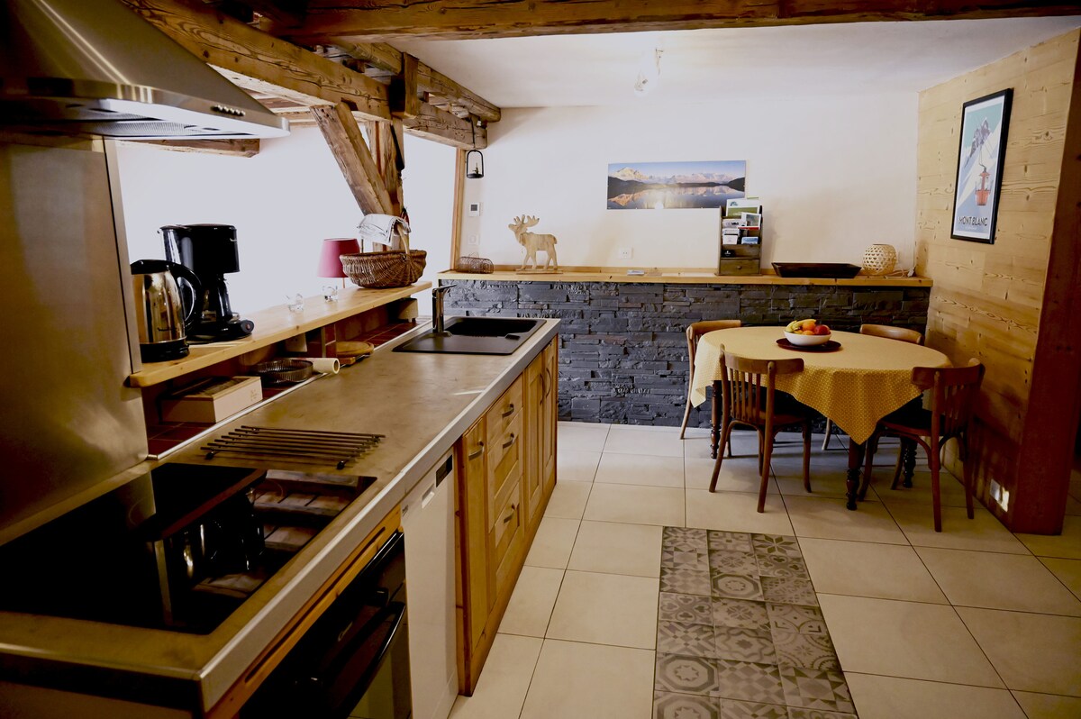 Відпочиньте в цьому унікальному і типовому помешканні, повністю відреставрованому в старому фермерському будинку 1820 року. Спокій, тиша та виняткові краєвиди — унікальне місце в природному середовищі без сусіднього району. Квартира розташована на першому поверсі нашої ферми з власником на першому поверсі та має приватну парковку та приватну терасу. Розташоване в 15 хвилинах від Шамоні-Мон-Блан.
