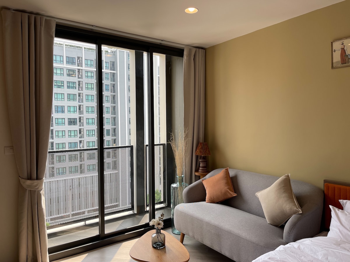 🌿Зробіть перерву та розслабтеся в цьому мирному оазисі. 🌟Підходить для відпочинку та роботи з дому. 💢Безкоштовний Wi-Fi на всій території 🏡Окрема кімната в малоповерховому кондомініумі з басейном 29 м, тренажерним залом,джакузі, суна, коворкінг, баскетбол, бігова доріжка та ігровий майданчик 🏕Номер для 1-3 осіб, обладнаний 1 ліжком queen-size, окрема вітальня та кухня. Wi-Fi, телевізор, кондиціонер, холодильник, повноцінний посуд, робоче місце 🍲 5 км до аеропорту DMK та поїзда Skytrain. Різноманітна місцева їжа за місцевою ціною.