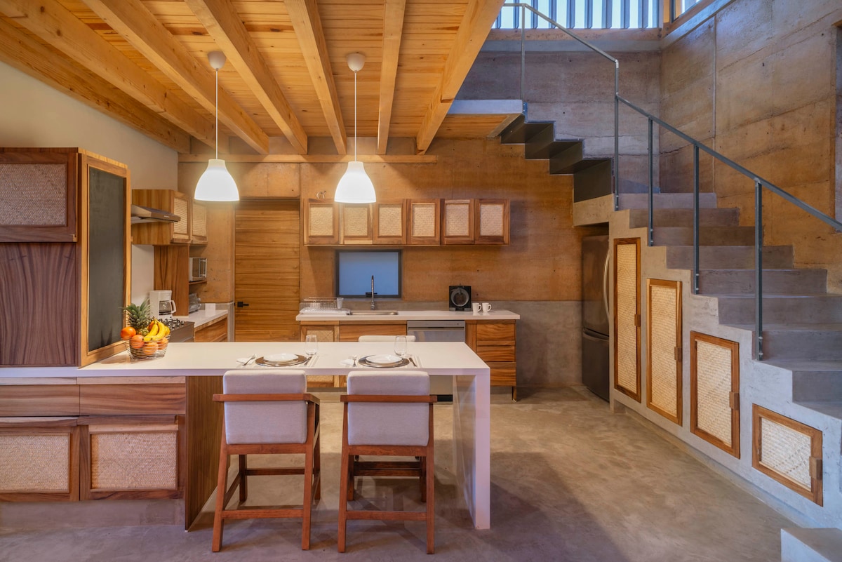 Це дивовижний котедж у саду авокадо. Розташований в Сан-Хуан-Атескапан неподалік від Валле-де-Браво. Він ідеально підходить для відпочинку та відпочинку в місті, для відпочинку та від 'єднання. Він встановлений на два квартали. З одного боку розташовані громадські приміщення, вітальня, їдальня, кухня з ванною кімнатою та бар зі сніданком на відкритому повітрі. Відразу з одного боку розташовані місця для відпочинку. Головна спальня з ліжком размера King size, шафою, терасою та власною ванною кімнатою.
