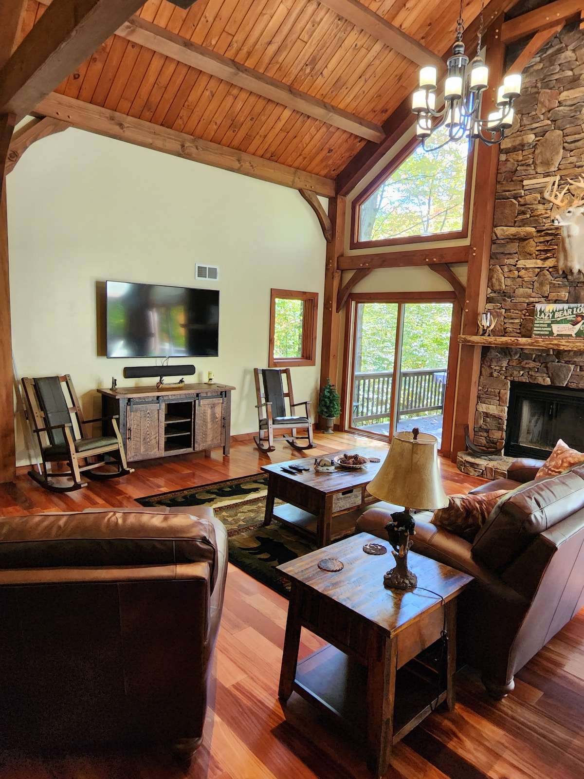 This cozy log cabin is conveniently located near Seven Springs, Hidden Valley, Ohiopyle State Park & Fallingwater. The log cabin is situated on a quiet lane along Poplar Run. Features: 3 bedrooms, 2 bathrooms, spacious living room, large kitchen, deck, outdoor seating, fire pit, pond. Guest house available April - Oct for additional fee. Inquire if interested. It features a queen bed, kitchenette & 1 bathroom. We offer Netflix & WiFi | NO Cable Dogs allowed for a $75.00 fee