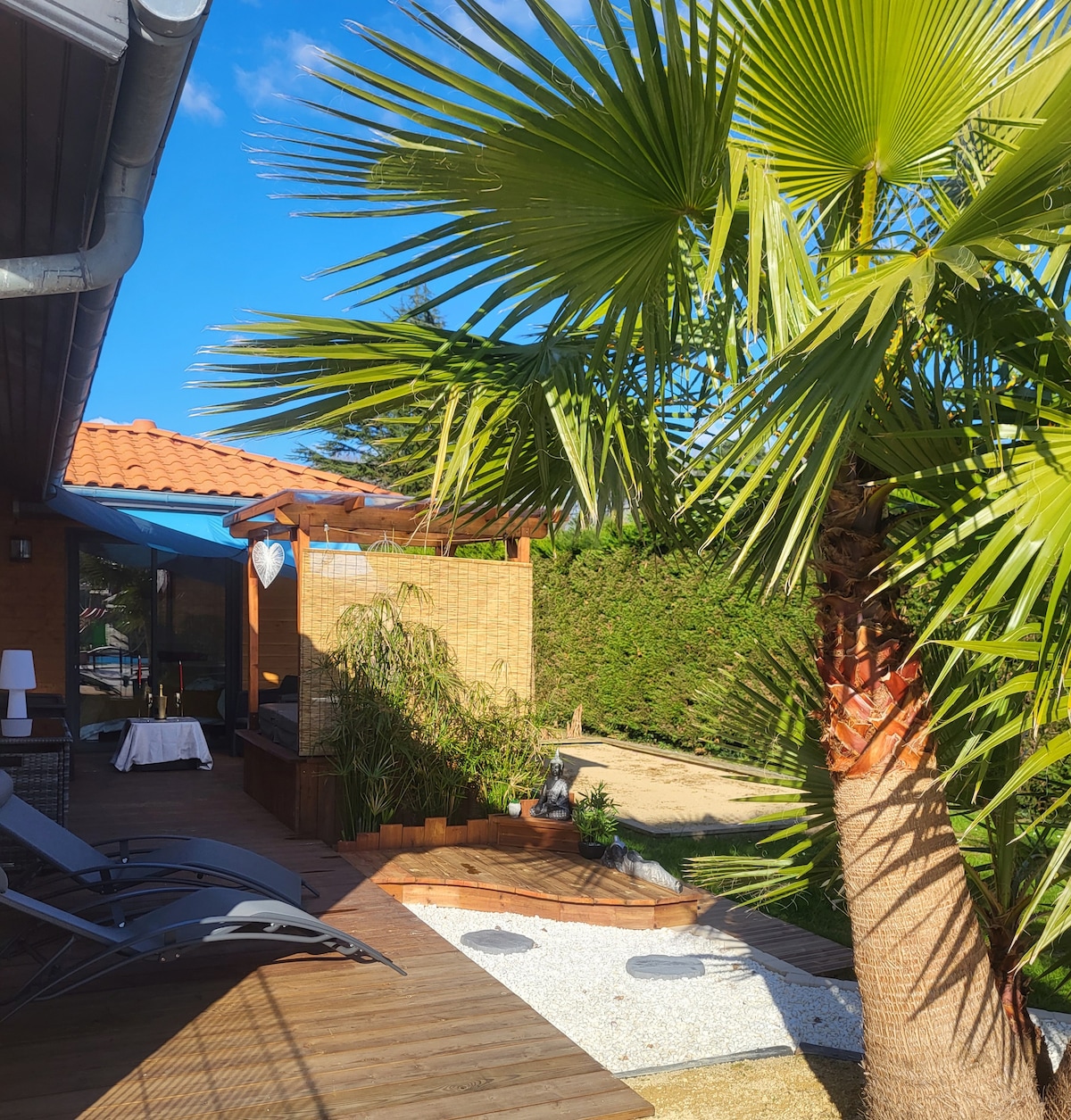RELAX LOFT-Suite en chambre d'hôtes avec accès illimité au spa ,sans supplément de tarif et petit déjeuner inclus.( autonome et servi en véranda). Composé d'une suite cocooning indépendante et privée avec salle d eau, d'une véranda avec spa privatif semi encastré attenant à la chambre, d'un jardin privatif sans vis à vis , avec piscine, terrasses et cuisine extérieure ! La vue principale est dégagée et exposée ouest! La partie arrière avec jardin environ 300 M2 vous est réservée.