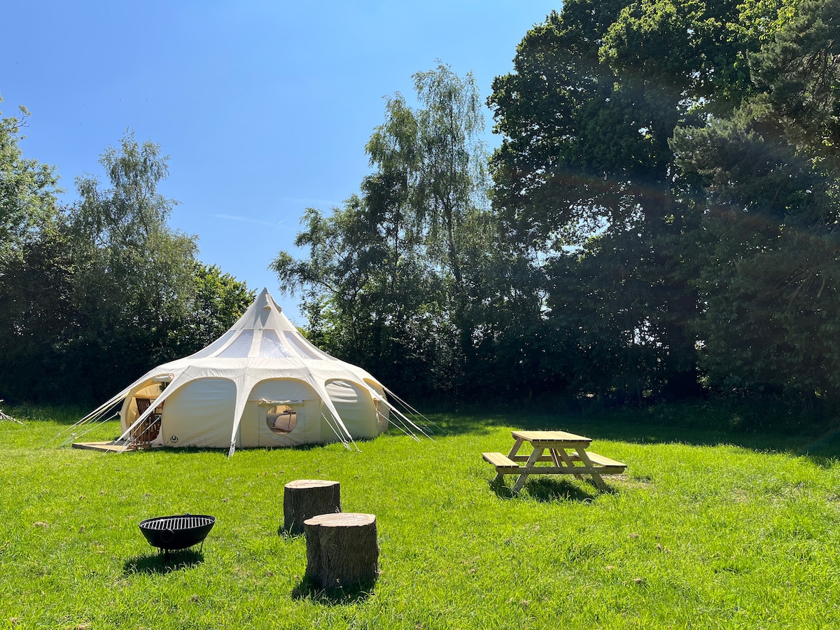 Dorset safari tent Beech, on-site stables & bar